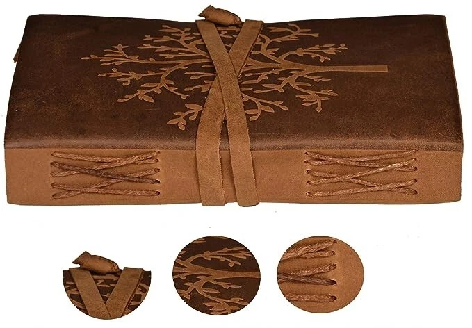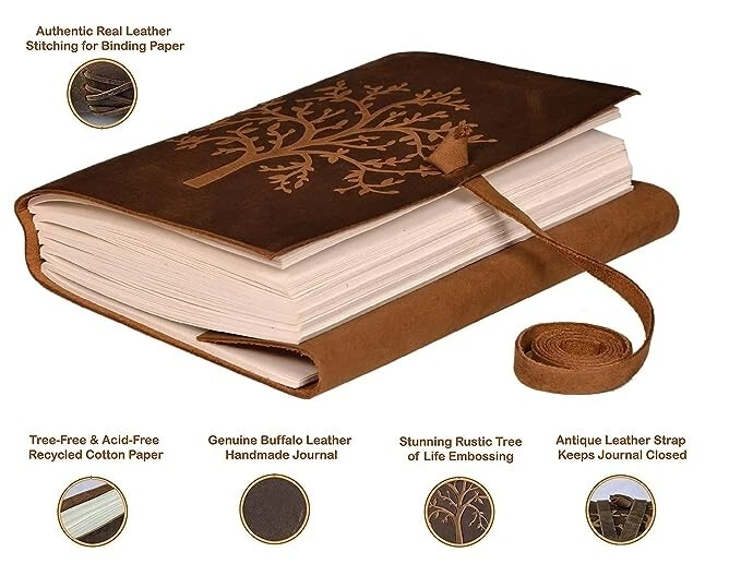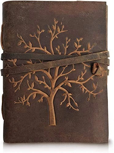 C CAVALO - Be Unique Tree Embossed Leather Diary, Brown Colour Antique Handmade Leather Bound Notepad for Men and Women 7 x 5 Inches, Gift for any one (TREE) Brand CAVALO - Be Unique Colour tree vintage brown Theme Tree Pages 100 Pages Cover Material Leather About this item Beautiful & Aesthetic: Handmade leather book journal - use it as scrapbook or sketch book to draw, stick travel photos to make collage, practice Calligraphy using fountain pen, paint your dream using a paint brush and do not worry as we use no-bleed through thick craft pages. Best hand-crafted gift for an Art lover. Carry in style and get compliments wherever you may go, Compliments Guaranteed Write Travel Stories: Save the beautiful moments shared with your loved ones travelling around your favorite places & experience the Nostalgia when you read them later in time. This daily diary can be an easy conversation starter in your new college or university. It is compact sized so you can write wherever you are and can easily fit into a purse or backpack, can carry to your next vacation trip Add Creativity: Use different color pens, pencil, wax color, fountain pen, watercolor, roller gel pen, highlighter. We use no-bleeding unlined smooth cotton craft environment friendly paper, with a vintage look which can be used by scribblers, amateur poets, writers & professional artists. Write your very own homebrew recipes This cute & vintage aesthetic notebook/journal/diary/stationary or aesthetic journal is a unique gift to your best friend, man, women, girl, boy, boss as birthday gift, anniversary gift, women’s day, father’s day gift. It can be present as slam book for memories, autograph book, personal diary, popit diary secret diary, small and mini antique diary to your mother, father, brother, sister or lover. it feels like harry potter gift. This small vintage diary can be a personal mother dairy. Its unique and antique design will be definitely stole your heart. It is a good choice for farewell gift special journal 240 pages notebook for notes writing, harry potter sketch book, smart mini cute artist scrapbook, spiral books, day to day activity planner, aesthetic best scrap memories of your friends, drawing and stylish latest personalized unruled handmade gifting register with leather cover. Best Choice of gift for any occasion. Free Shipping....**local custom duty or taxes (if any) will bare by customer only. if buyer declined to pay there will be no return, no refund and no cancellation of order. Feel free to ask about the items.