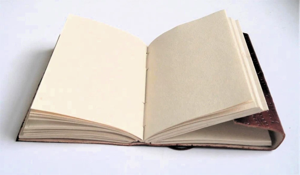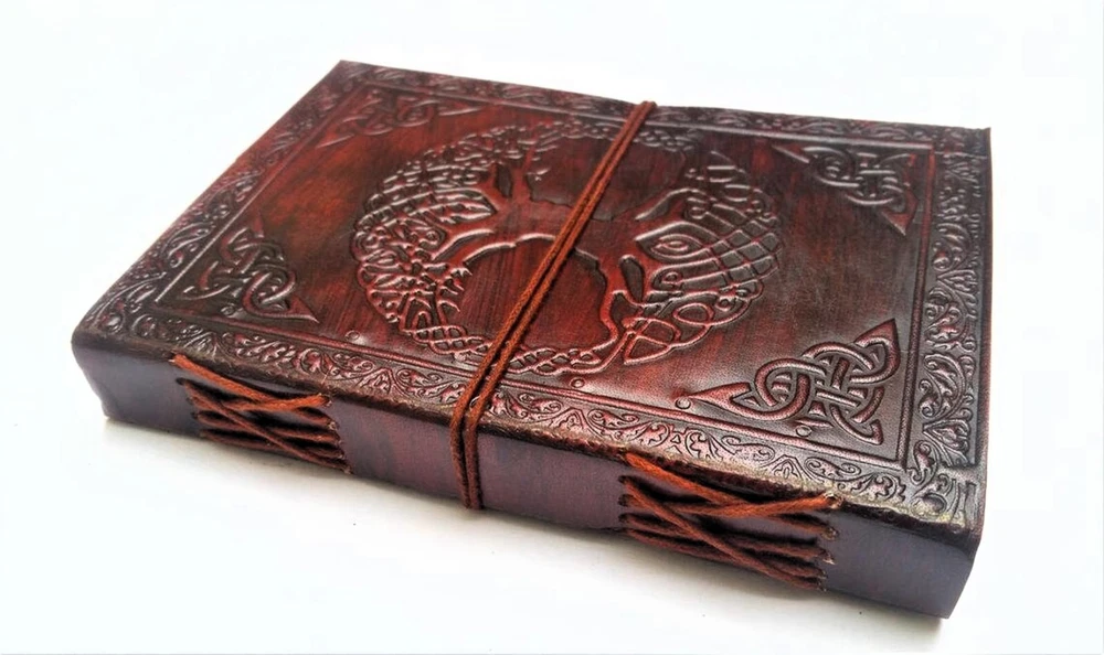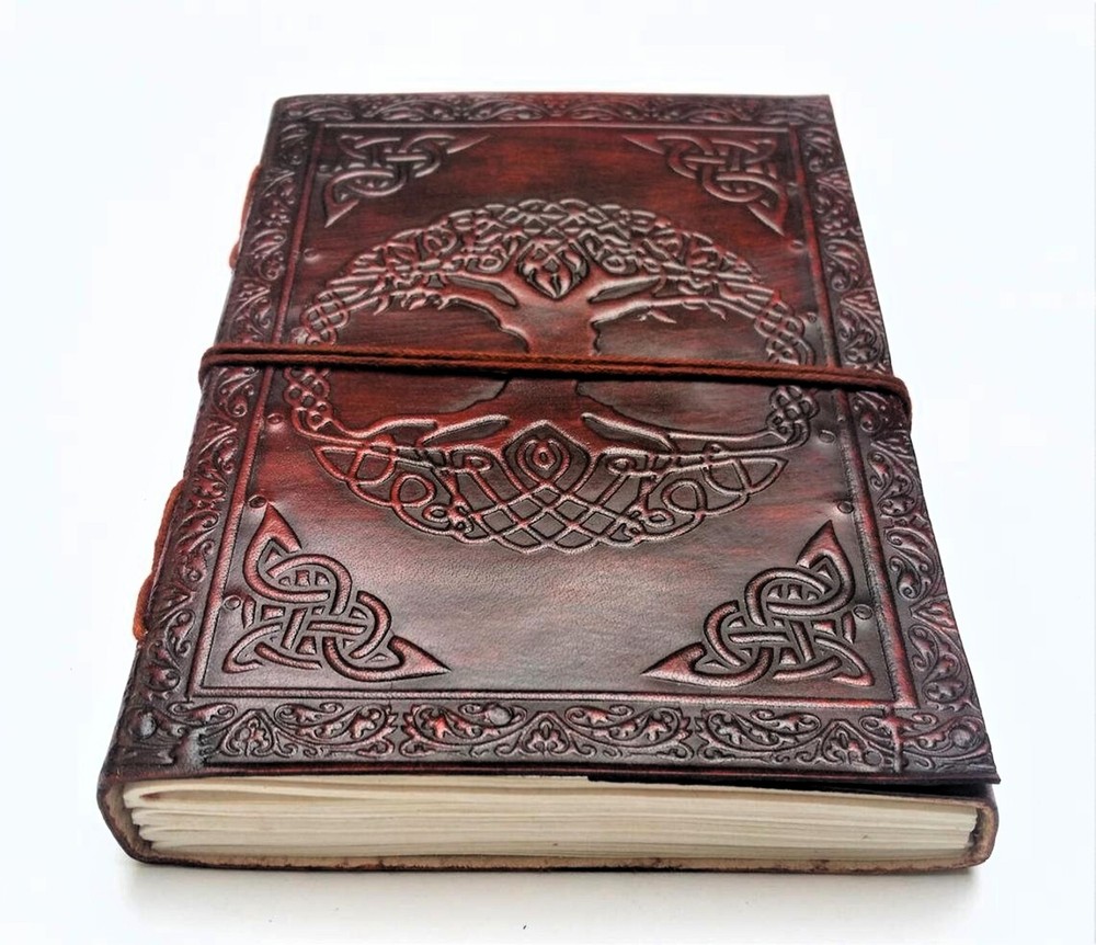 This beautiful handmade Tree of Life journal / notebook is made with plain handmade paper bound by genuine leather. The handmade sheets of paper are fixed with a removable string binding which makes it possible to replace with new paper once used. Ideal for notes, diary and sketchbook. Dimensions: Length: 18 cm / 7 inches Width: 13 cm / 5 inches Thickness: 2.5 cm / 1 inch Approximately 100 sheets of paper.
