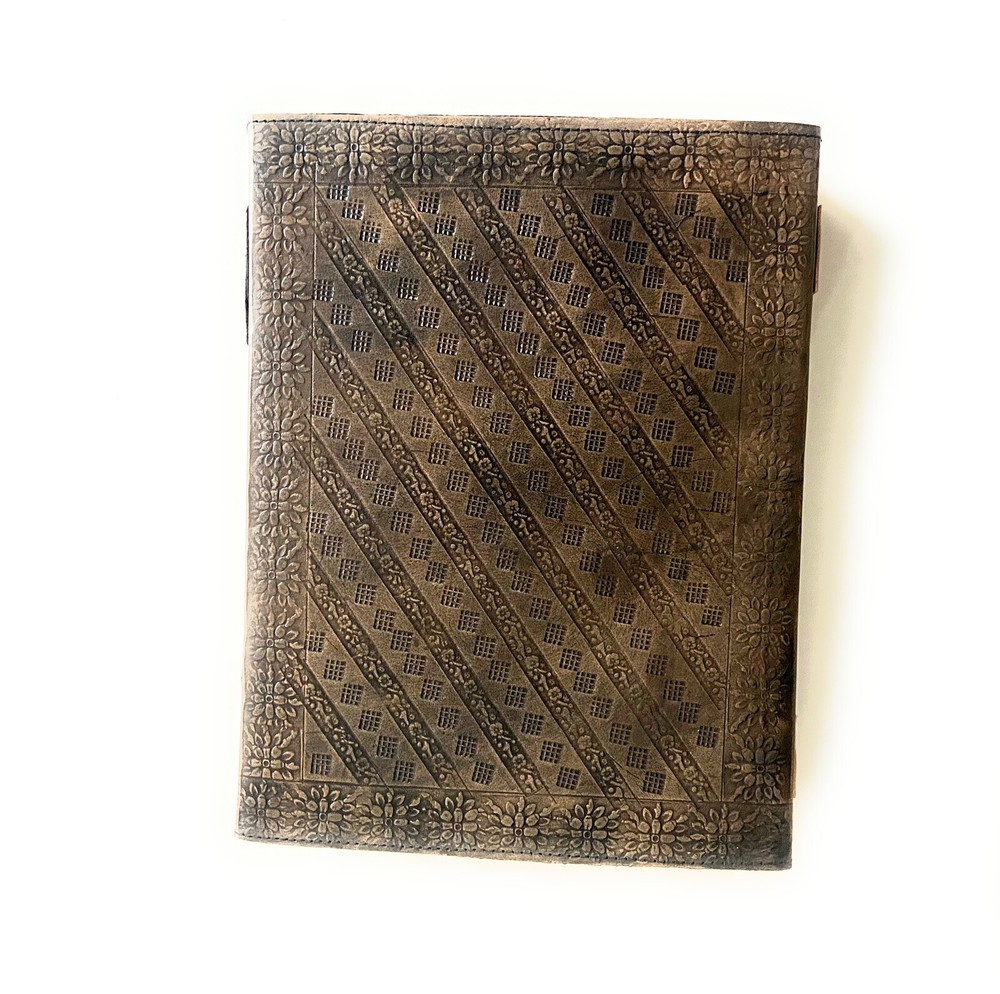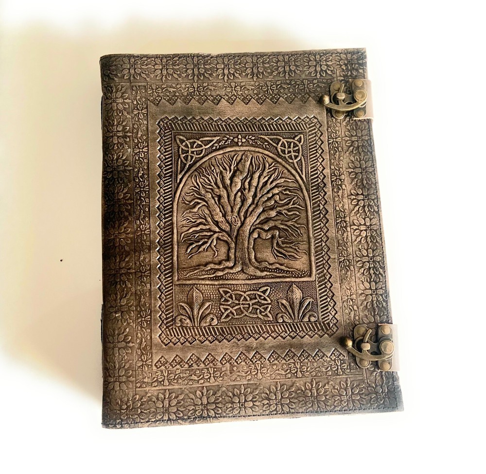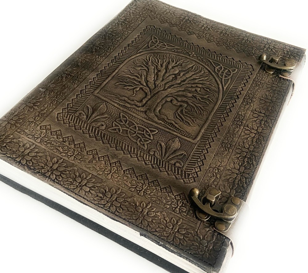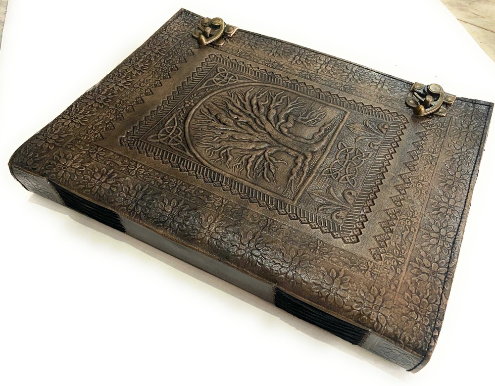 Take a look at this exquisite 210-page leather journal notebook. It features a luxurious and limited edition design from Indian Leather Arts. The journal is perfect for travel, sketching, or as a diary and a gift for a loved one. The cover material is made of high-quality leather, and it comes with personalization options. The notebook is a great addition to your office supplies, whether you're in business or industrial work. This item is perfect for those who are looking for a unique and high-quality journal experience. 600 page large pentagram journal designed to stand out from crowd. * Large pentagram embossed leather journal 600 pages. * 600 blank pages counting both side ( 300 sheets ) * Leather Journal notebook diary with lock. * Brass C-Lock on the corner edge to open and close. * Handmade blank paper for writing notebook. * Size- 10" x 7" x 3