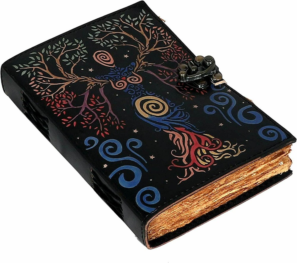Handmade deckle edge paper mother of earth leather journal writing notebook tree of life antique embossed bound daily notepad unlined paper cover with colorful print journal for women SIZE: 7x5 inch LEATHER VILLAGE PROMISE: - Leather Village Vintage Leather Journal comes with the Trust and promise of Purity of craftsmanship with each Writing Journal. Leather Village prides itself on making products from the highest quality materials with attention to detail. But for any reason if you are not satisfied with the quality of your journal kindly contact us for replacement. UNIQUE GIFTS - Stunning gifts for men on Father’s Day, Graduation or the perfect gift for women on Mother’s Day, Valentine’s Day, Birthday’s or Anniversary. A True Art Treasure, this blank unlined notebook will become a Family Heirloom! Organizer contains recycled deckle edge blank pages 200 which are perfect for mini notes. Handcraft leather diary is an awesome find for book lover or literature present MANY USES - Can be used as a notepad, journal, writing notebook, sketch book. 1.5 inch thickness, easy for handwriting, drawing or sketching and compact for carrying in your bag. Ideal for alternative Artist Sketchbooks, Photo Album, Traveling Notes, Business Executive, Logbook, Poetry Work, Journalists, Food Planner, Instagram Scrapbook and Bible Journaling.
