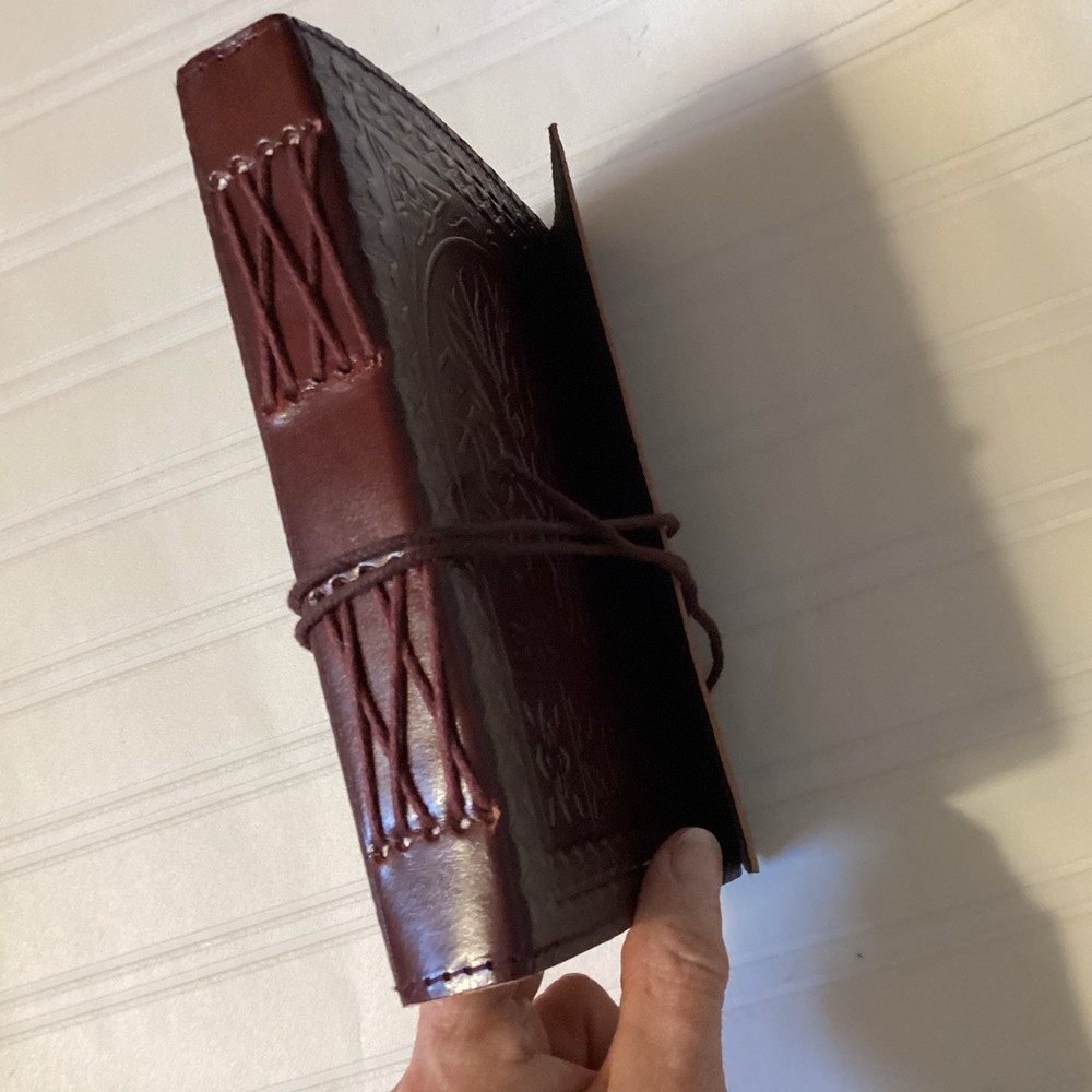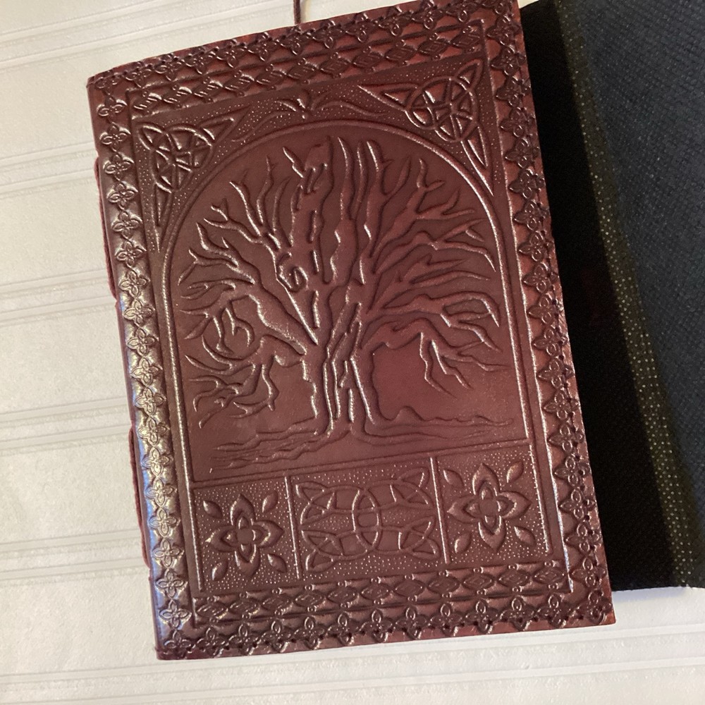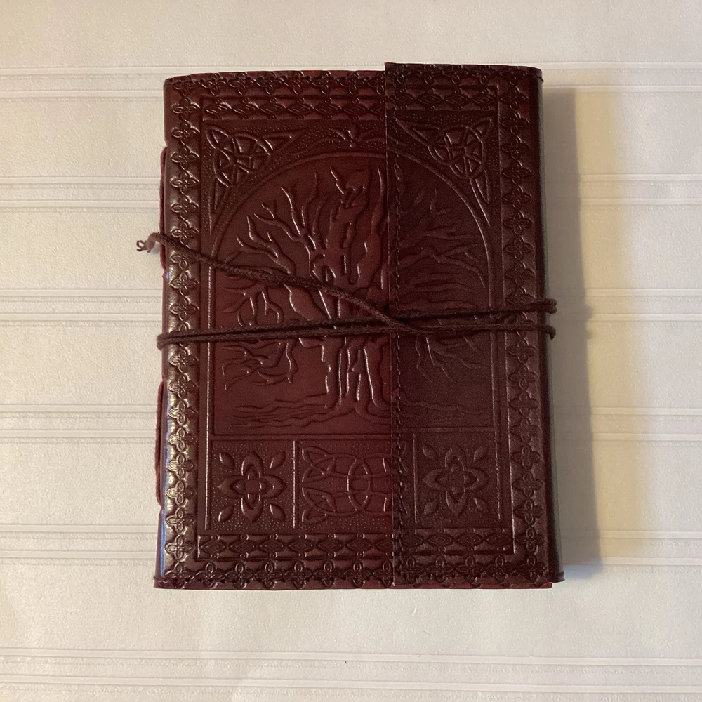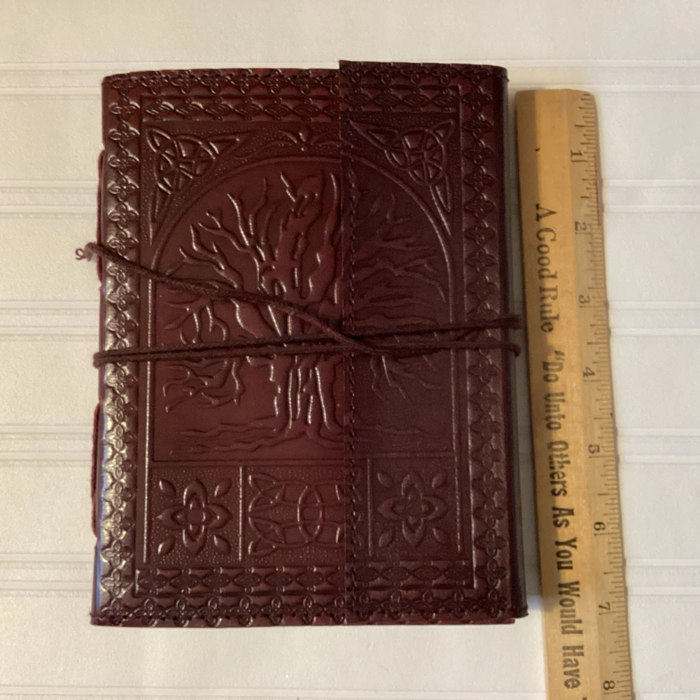 This beautiful Tree of Life Spell Book Real Leather Journal Sketchbook is the perfect addition to your collection. Handmade by VRINDA, this vintage/retro style notebook features a leather cover and cartridge paper, making it both durable and unique. The brown color adds to its rustic charm, while the intricate design on the cover makes it a perfect choice for those who love to add a touch of bohemian flair to their writing. Ideal for use as a business journal, office supply, or for personal use, this notebook is perfect for anyone who loves to write. The unit quantity of one ensures that you get a one-of-a-kind item that is all yours. Whether you're using it to jot down notes, sketch ideas, or simply write your thoughts, this leather diary is sure to inspire creativity and help you keep your ideas organized.