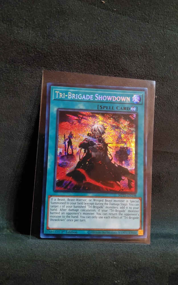 Dive into the pinnacle of Yu-Gi-Oh! TCG with the Tri-Brigade Showdown card from the 25th Anniversary Tin: Dueling Heroes Mega Pack. As a Prismatic Secret Rare, this card shines with its unique holographic design, making it a standout addition to any collection. The card, numbered MP23-EN198, represents the pinnacle of strategy and style for players and collectors alike. This 1st Edition Spell-Continuous card is a must-have for those looking to enhance their gameplay experience or round out their collection with a touch of rarity and power. Manufactured by Konami and presented in English, Tri-Brigade Showdown is a testament to the enduring legacy and innovation of the Yu-Gi-Oh! trading card game.
