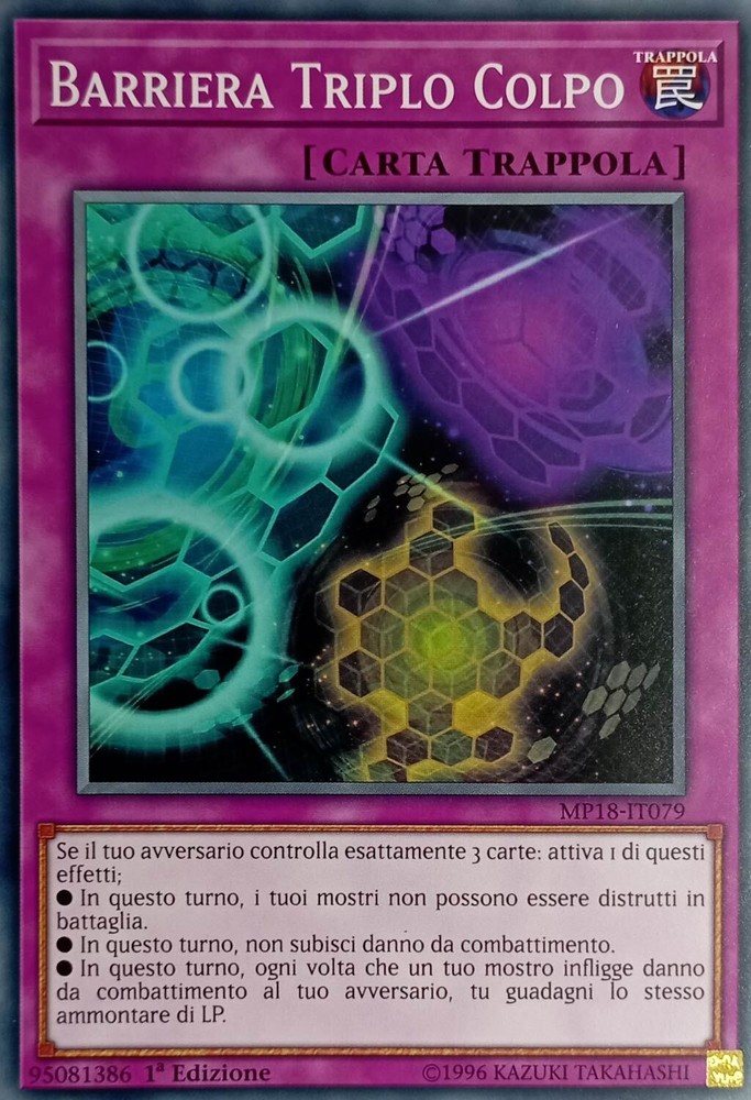 Barriera Triplo Colpo - Comune - Mega-Tin 2018 Mega-Pack - MP18-IT079 Ita Nuovo Barriera Triplo Colpo - Comune - Mega-Tin 2018 Mega-Pack - MP18-IT079 Ita Nuovo Se il tuo avversario controlla esattamente 3 carte: attiva 1 di questi effetti; ●In questo turno, i tuoi mostri non possono essere distrutti in battaglia. ●In questo turno, non subisci danno da combattimento. ●In questo turno, ogni volta che un tuo mostro infligge danno da combattimento al tuo avversario, tu guadagni lo stesso ammontare di LP. Shipping Shipping cost: Italy Posta 1 -> 2,95 Corriere Espresso -> 5,99 Outside Italy Priority - 8,00 Delivery time: La Spedizione Viene Effettuata entro i 5 giorni successivi al pagamento dell'ordine. Payment Per qualsiasi info contattateci Service Per qualsiasi info contattateci