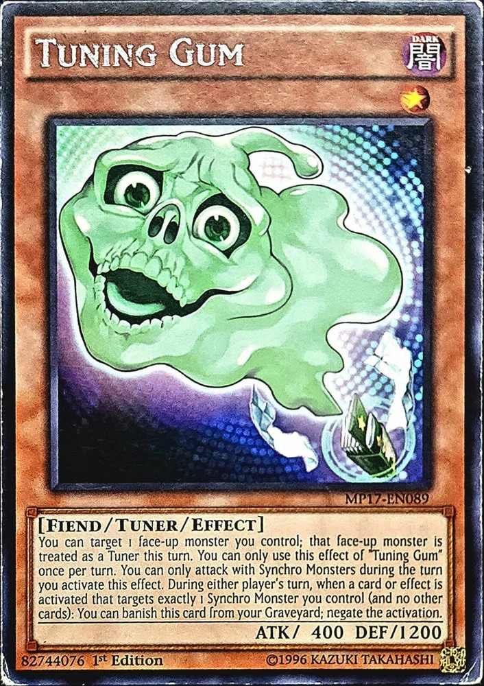 Bluefires Stuff daniel8769-2008 has 99.1% Positive Feedback Welcome! At my store, you will find collectibles and refurbished tech. From recycled memory chips and processors to a variety of storage drives and rebuilt desktops and laptops. I try to keep a variety of products available for everyone. From a single Yu-Gi-Oh! card to a full themed structure Tuning Gum MP17-EN089. Condition is New. Item Description Buyers Note: Lightly played ! A great card for any collector or player. This card is in Lightly played or better. Card Name: Tuning Gum MP17-EN089 - Common - 1st Edition Set: MP17- Mega Pack 2017 Quantity:1 Edition: 1st Rarity: Rare Condition: L{P Condition Guide: I do not sell any cards that are in MINT condition, the best condition that we offer is near mint. Near Mint (NM) - Cards in Near Mint condition show minimal to no wear from shuffling, play or handling and can have a nearly unmarked surface, crisp corners and unblemished edges outside of a few minimal flaws. A Near Mint card may have a tiny edge nick or a tiny scratch or two, but overall look nearly un-played with no major defects or flaws. Lightly Played (LP) - Cards in Lightly Played condition may have minor border or corner wear or even just slight scuffs or scratches. There are no major defects such as water damage, bends or issues with the structural integrity of the card. Noticeable imperfections are okay, but none should be too severe or at too high a volume. Moderately Played (MP) - Cards in Moderately Played condition exhibit condition issues visible at a casual glance. Cards in Moderately Played condition can have border wear, corner wear, scratching or scuffing, creases or whitening, minor dirt buildup or any combination of mild examples of these marks. A Moderately Played card may have some form of a more major marking, such as spot water damage or creasing that doesnʼt affect card integrity, but not in combination with other issues such as scratches, scuffs or border/edge wear and not impacting a large area of the card. Heavily Played (HP) - Cards in Heavily Played condition show a severe amount of wear. Heavily Played condition can include cards that have major creasing, major whitening, major border wear or any combination of those flaws. (These flaws cannot prevent the card from being tournament playable when sleeved.) Damaged - Cards in Damaged condition can exhibit a tear, bend or crease that may make the card illegal for tournament play, even in a sleeve. Cards in Damaged condition may have extreme border wear, extreme corner wear, heavy scratching or scuffing, folds, creases or tears or other damages that impacts the structural integrity of the card