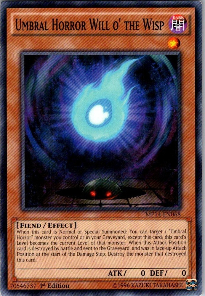 Elevate your Yu-Gi-Oh! TCG collection with the Umbral Horror Will o' the Wisp, a formidable Fiend-type Monster card that brings a touch of darkness to any deck. Originally released in 2014 as part of the Mega Pack 1st Edition, this card is a common rarity piece that shouldn't be underestimated by duelists and collectors alike. Produced by Konami and featuring the standard card size and regular finish, this English-language card is a classic addition to the game. The card's attribute is firmly rooted in the dark, ensuring it fits seamlessly into a myriad of strategic builds. Add the Umbral Horror Will o' the Wisp to your collection and bring the thrill of the battlefield to your doorstep.