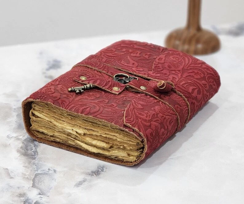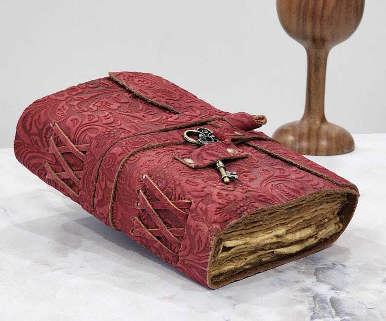 Leather Bound Journal Book of Shadow Leather Sketchbook Drawing Journal A5 Notebook Handcrafted by skilled artisans with a lot of love and care. Size - 7x5 Inches 8x6 Inches and 10x7 Inches Colors - Black, Brown, Blue, Red, Green ★ The Inside of This Journal Is Handmade Decal Edge Paper That Looks Vintage and Well Stitched If You Want White Plain Paper So Please Select Right Paper Option There Are Two Options Available. ★ Each Journal Is Specially Designed and Handmade from Premium Leather. Artful Hand Stitching to Create a Timeless Space for Your Thoughts. ★ We Designed This Classic Leather Journal as A Time Capsule for Your Thoughts. Capture Your Important Memories, Life Changing Moments and Evolving Dreams as a Keepsake to Reflect Upon in Years to Come.