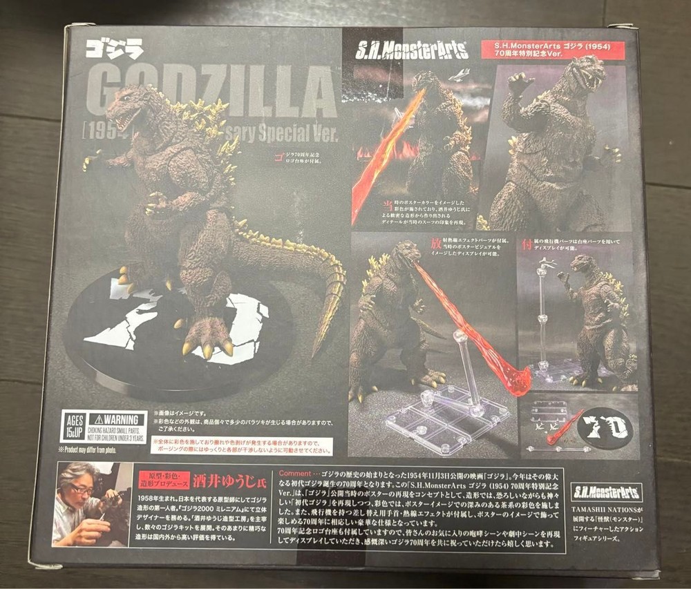 Unopened S.H.MonsterArts Godzilla (1954) 70th Anniversary Special Ver. Description S.H.MonsterArts Godzilla (1954) 70th Anniversary Special Ver. Brand: BANDAI This is a new and unopened item. 60-day free return guarantee Payment eBay Managed Payments PayPal Credit Card Apple Pay Google Pay Shipping Expedited Shipping:With insurance and tracking(About 3-7 days) Usually arrives in about 5 days. Always provide a tracking number for shipments. Terms of Sale Our Products are 100% Authentic. I promise to pack up the product very carefully. Although slight costs start for that purpose, I do some shopping to you in comfort, and want you to enjoy the product. Combine shipping Welcome!! Please request Total. 60 day returns. Seller pays for return shipping. Please feel free to contact us regarding the product. International Buyers - Please Note: Import duties, taxes, and charges are not included in the item price or shipping cost. These charges are the buyer's responsibility. Please check with your country's customs office to determine what these additional costs will be prior to bidding or buying.