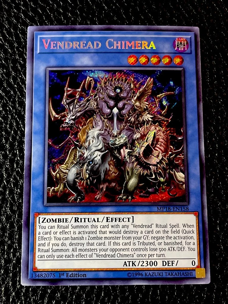 You are bidding on : 1 x Yu-Gi-Oh Mega Tin 2018 VENDREAD CHIMERA (Secret Rare - 1st Edition) MP18-EN158 All cards are in Near Mint condition unless specified Pictures are stock pictures ONLY it is not of the actual card How we identify the condition of the card: Near Mint: Most of the time cards in this condition are pack fresh but, the card may have minor flaws that are not visible with a quick inspection, small white dots or scratches that you have to closely examine the card to see. Excellent: Overall the card looks near mint but may have minor scratches, slightly worn edges that are visible but they do not interfere with the way the card looks. Lightly Played: Similar to a card in excellent condition except there is more whitening around the edges and the corners are a little more worn or slight bends or creases that are visible. There might be some slight whitening on the back or front of the card. Imperfections will be visible with a quick inspection. When the card is sleeved the imperfections will not be noticeable and the card will look just like the rest of your cards Played: There is a large amount of whitening around the edges and the corners have a good amount of damage, many scratches, bends and/or creases on the card. When the card is sleeved it can still be played Shipping and Handling : Canada Shipping is $1.50 CAD Tracking is offered for $13 CAD BUT tracking is required on any purchases that are over $50 CAD Please contact us for combined shipping if interested in purchasing multiple cards before paying USA Shipping is $1.99 CAD Regular Mail for all orders under $19.99 Shipping is $7.99 CAD with tracking for all orders $19.99 and over Please contact us for combined shipping if interested in purchasing multiple cards before paying INTERNATIONAL Shipping is $4.99 CAD with regular mail Tracking is offered for $29.99 CAD BUT tracking is required for purchases over $50 CAD Please contact us for combined shipping if interested in purchasing multiple cards before you pay Combined shipping: We offer combined shipping: each and every additional item after the first one is only $0.25 (25 cents). To obtain combined shipping fees, please use the shopping cart or ask for the combined shipping invoice BEFORE you pay. If you pay item-by-item, right away after the purchase, we will not be able to offer you combined shipping anymore. Handling Your order will be shipped 1-3 business days after payment has been received *“Business days” are normal weekdays. Saturdays, Sundays, and major holidays do not count as business days. Cards purchased are packaged and shipped in a sleeve, toploaders, a team bag and an envelope to ensure protection of cards Payment : Payments should be made within 5 days after purchase Epic Cards and Games Any questions feel free to email us and allow 1 day for a response. Thanks for looking! Sales Tax (Canada Only) : Purchases made by Canadian residents are subject to applicable GST/HST, depending on your province/territory. (If you do not agree to this, please do not bid. We have a registered business in Canada and are required by law to charge taxes to anything shipped within the country.) Thank you for shopping with Epic Cards and Games