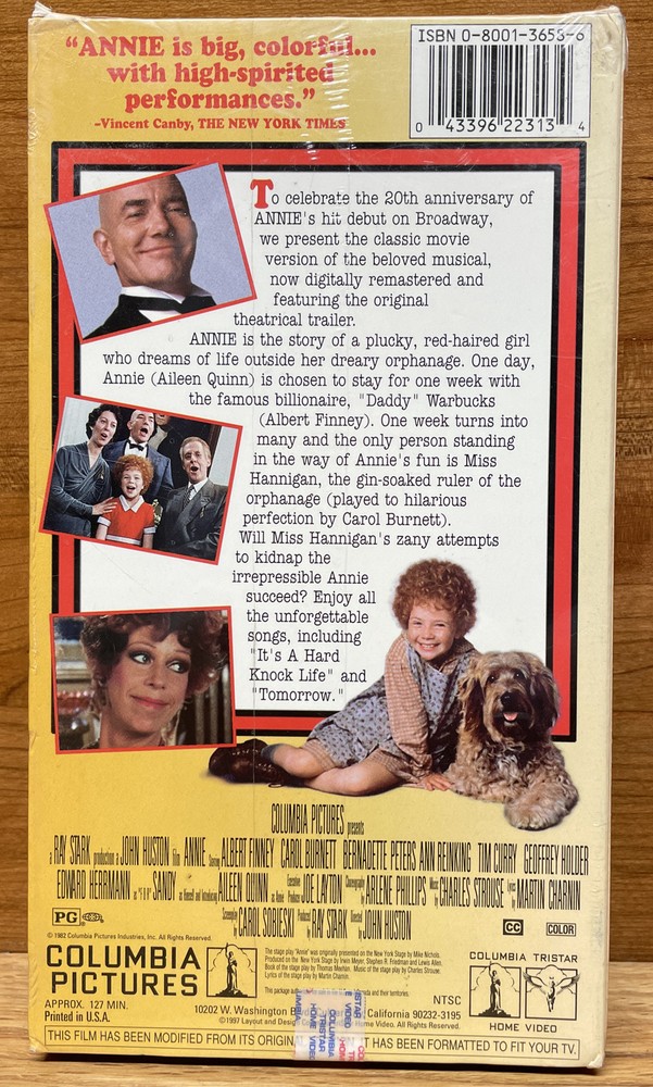 A red-haired mop-top orphan (Aileen Quinn), yearning to break out of her dreary life in an orphanage run by an iron-fisted, boozy matron (Carol Burnett), charms billionaire Oliver "Daddy" Warbucks (Albert Finney) into adopting her--but what she really wants is to find her real parents. Academy Award Nominations: 2, including Best Art Direction-Set Decoration, Best Original Score.