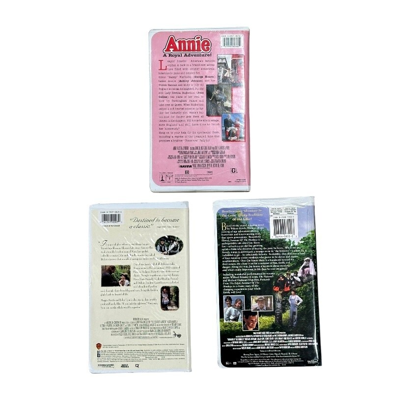 VHS 1990s Movie Lot of 3: The Secret Garden 1994 Summer of the Monkeys 1998 Annie, a Royal Adventure 1995 Smoke-free Environment Condition : Two of the cases have minor flaws (last two PICs). Everything else is fine. Thanks so much for your consideration! ~Dana