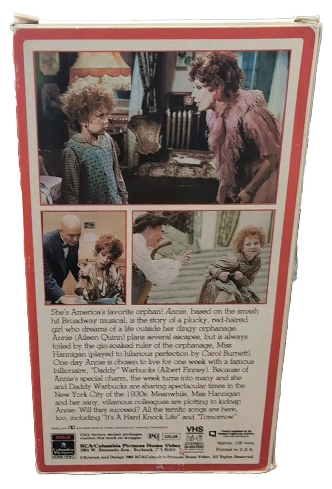 Experience the classic comedy and musical of the 80s with this vintage 1985 release of "Annie" on VHS. Starring Carol Burnett and Aileen Quinn, this NTSC signal standard VHS tape is in the English language and rated G. The tape weighs 10 oz and is not a former rental. Directed by John Huston and produced by Columbia Pictures, this VHS tape is a must-have for any classic movie collector. The sub-genre of this film is musical and the genre is comedy. Get ready to laugh and sing along with this timeless classic.