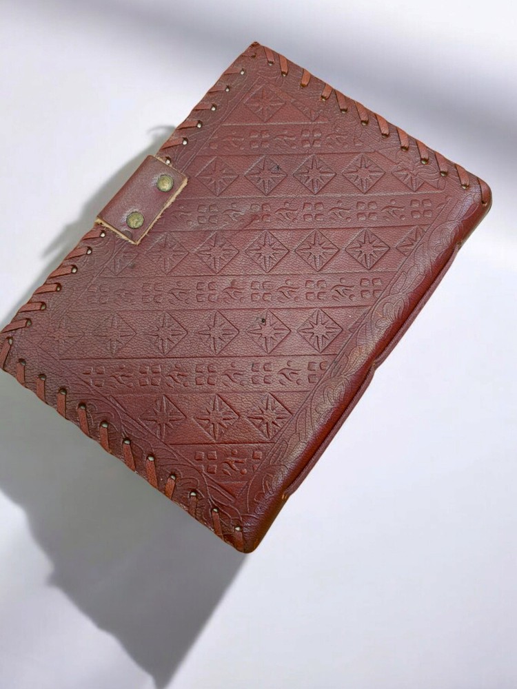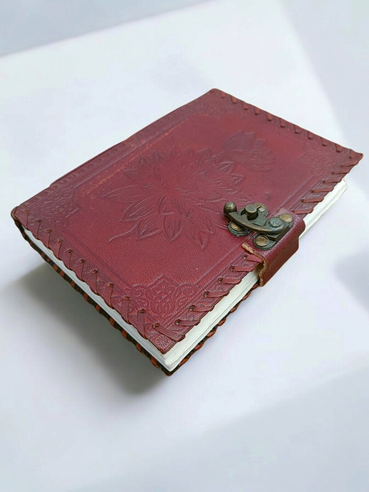 Product Description A BEAUTIFUL LEATHER JOURNAL NOTEBOOK OF THE HIGHEST QUALITY MATERIAL - GENUINE LEATHER SIZE - 7x5 INCH PAGE COUNT - 192 PAGES (BOTH SIDE COUNT) PAGE TYPE - UNLINED BLANK PAGES EMBOSSING - FLOWER EMBOSSED CLOSURE - MATTEL LOCK Entirely handcrafted by Handicraft Export artesian, each leather-bound journal is a work of art and handmade. We use a thicker, higher-grade leather combined with incredible craftsmanship to create a journal that is soft and supple in the hand with that fabulous, intense leather scent. Our water buffalo leather is prepared in the crazy horse style and takes on its own distressed character with use. The natural colour vary due to resolution and light. You will be as proud to own your vintage journal as we have been to make it! Look and fell of an old book The Vintage Journal is made Thick and Rustic Paper which makes you feel like you are writing in an old relic. It will hold any ink without any bleed-through. The Leather Journal can be used as a Sketchbook, Shadow, Grimoire, Poetry journal, Food journal, memory journal, and many more. It transports you to a world all your own. STYLISH AND A TIMELESS MASTERPIECE Old Fashioned Paper along with the beauty of distressed leather, handmade by Artisans creates a masterpiece that you can cherish over decades. Add your special touch and you have a piece of art to hand down to the generations. STURDY BINDING AND LEATHER WRAPAROUND Sturdy hand-stitched binding to make sure that no paper comes out loose from your vintage notebook. The leather wraparound keeps the papers of the journal safe and secure. Naturally tanned leather will age with character - or simply rub away your markings if you choose. A lifelong companion on your journeys A BEAUTIFUL LEATHER JOURNAL OF THE HIGHEST QUALITY LOOK AND FEEL OF AN OLD BOOK STYLISH AND A TIMELESS MASTERPIECE STURDY BINDING AND LEATHER WRAPAROUND Why you should buy the Nomads Vintage Leather Journal ? THE STYLISHLY ANCIENT GIFT The antique cotton paper combined with the beauty of distressed leather, hand-stitched by Artisans, creates a keepsake you will cherish forever. Makes a great gift for the men, women, and Wiccans in your life! CREATE YOUR OWN ADVENTURE Escape with your Nomad Journal and create your own masterpiece. Write, Sketch, Doodle, or Draw, options are limitless.