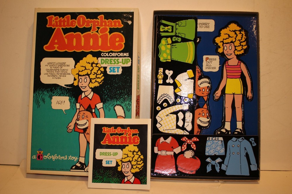 VINTAGE LITTLE ORPHAN ANNIE COLORFORMS DRESS UP SET NEW OLD STOCK. THIS SET HAS NEVER BEEN OFF THE CARD AND HAS NEVER BEEN USED. SET IS COMPLETE. SEE PICTURES FOR DETAILS....