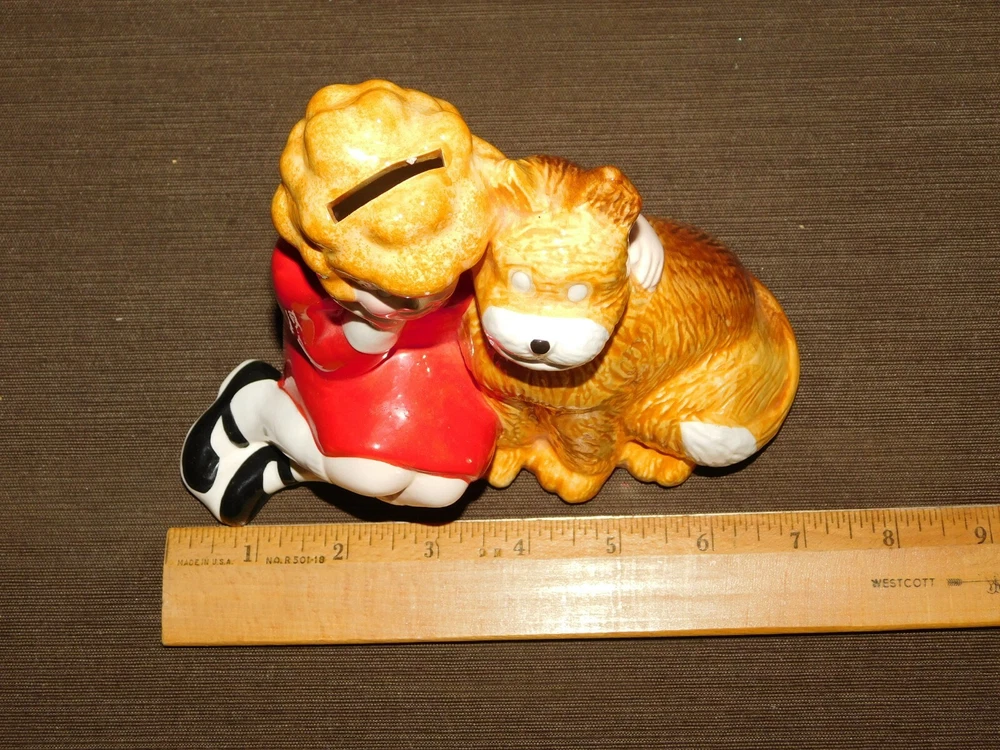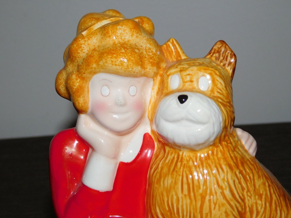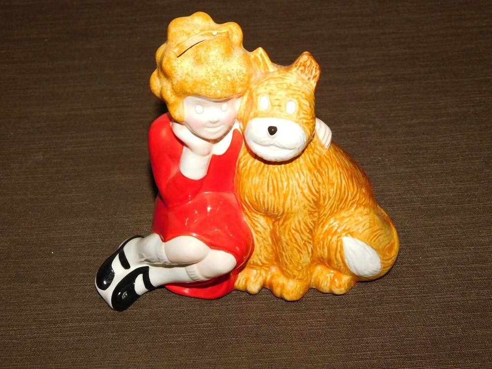YOU ARE BIDDING ON....... VINTAGE LITTLE ORPHAN TOY 1982 KNICKERBOCKER 5 3/4" ANNIE & DOG CERAMIC BANK .. . SOME HANDLING WEAR/AGE DISCOLORATION. .PLEASE VIEW PHOTOS FOR CONDITION.***PLEASE E-MAIL IF YOU HAVE A QUESTION OR WANT AN ADDITIONAL PICTURE....PLEASE VISIT MY EBAY STORE FOR ADDITIONAL VINTAGE ITEMS..THANK YOU***8S BX1876-10101010