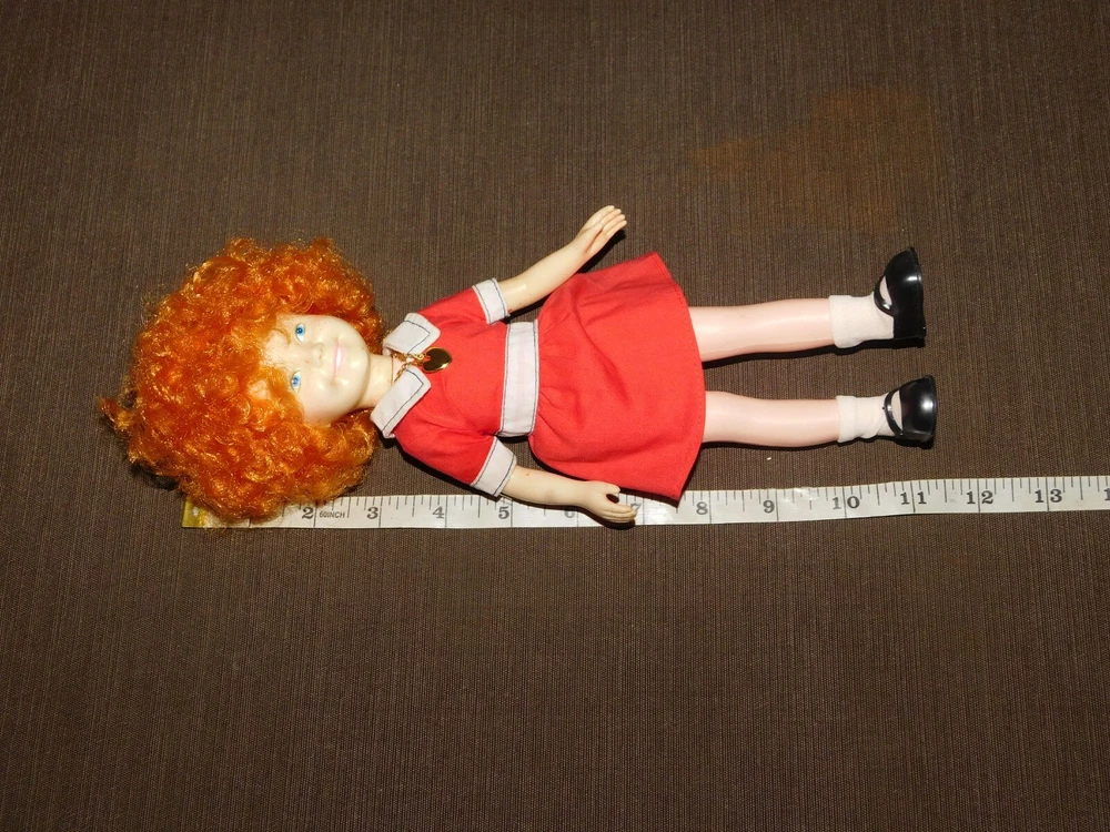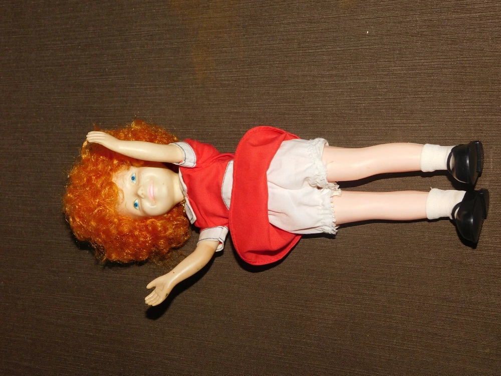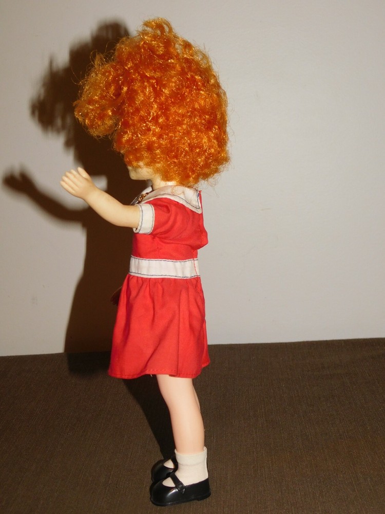 YOU ARE BIDDING ON....... VINTAGE LITTLE ORPHAN TOY KNICKERBOCKER TOY CO 11" ANNIE DOLL .. . SOME HANDLING WEAR/AGE DISCOLORATION. .PLEASE VIEW PHOTOS FOR CONDITION.***PLEASE E-MAIL IF YOU HAVE A QUESTION OR WANT AN ADDITIONAL PICTURE....PLEASE VISIT MY EBAY STORE FOR ADDITIONAL VINTAGE ITEMS..THANK YOU***8S BX1876-7887-2VBX0303-2222