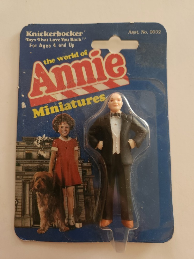 Step into the world of classic cinema with the vintage 1982 NOS The World Of ANNIE miniatures, featuring the charismatic Daddy Warbucks. At 2.5 inches tall, this collectible captures the essence of the beloved character from the hit movie 'Annie.' Crafted with attention to detail, it's a charming piece that any fan of the film would cherish. Originating from Hong Kong, this piece of movie memorabilia is a unique find for collectors and enthusiasts of the entertainment industry. It's a delightful nod to the nostalgia of 'Annie,' making it an exceptional addition to any collection of film-related treasures.