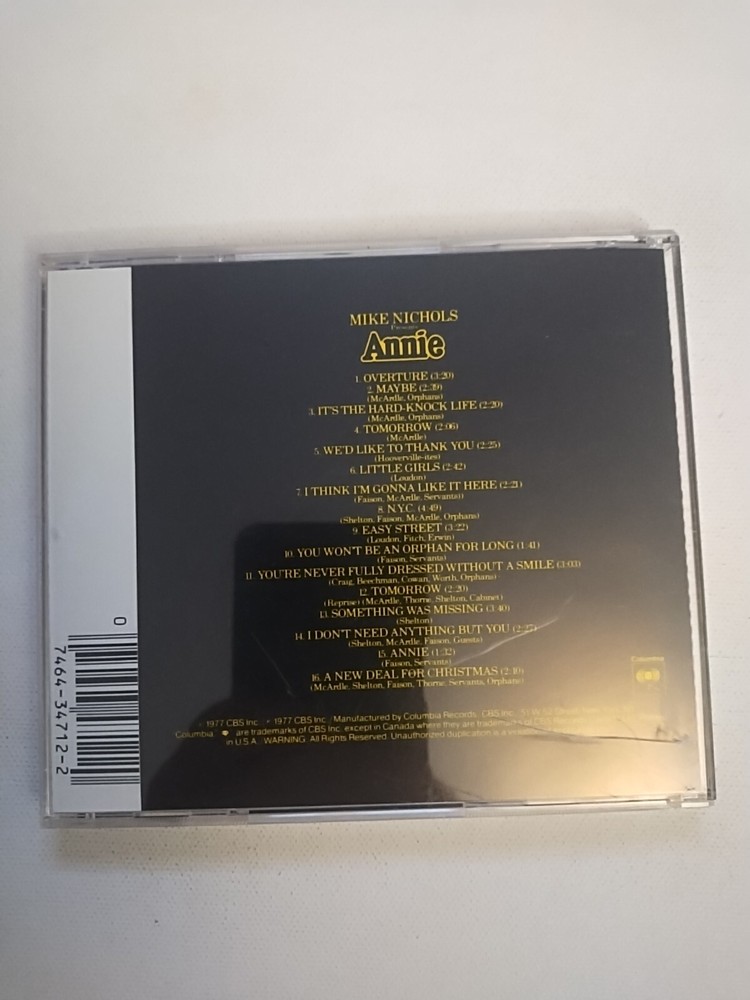 Get ready to have your mind blown with this amazing CD featuring the original cast recording of the iconic musical Annie. This CD is a must-have for any fan of soundtracks and musicals, and it's packed with the most talented artists in the industry. The CD comes in a convenient format that's perfect for listening to on the go, and it's sure to become a staple in your music collection. With Annie: Original Cast Recording, you'll get to enjoy all your favorite tunes from the movie, including "Annie," "The Sun Will Rise," and "I'm Gonna Try and Change the World." This CD is perfect for anyone who loves musicals, and it's a great addition to any music collection. So why wait? Order your copy today and experience the magic of Annie's original cast recording!