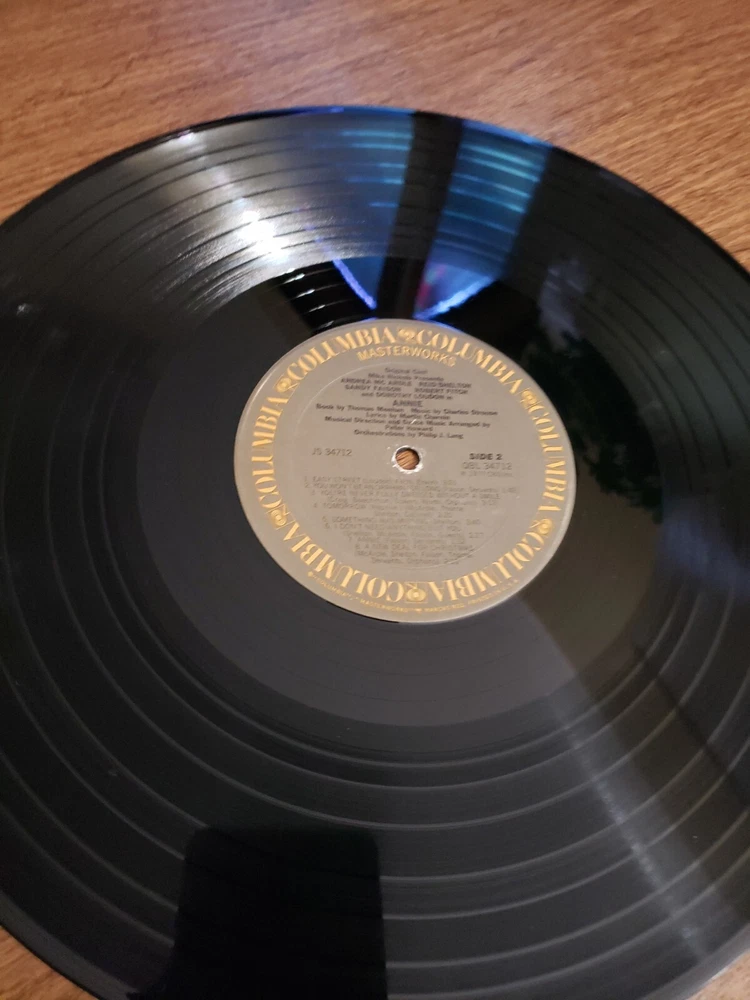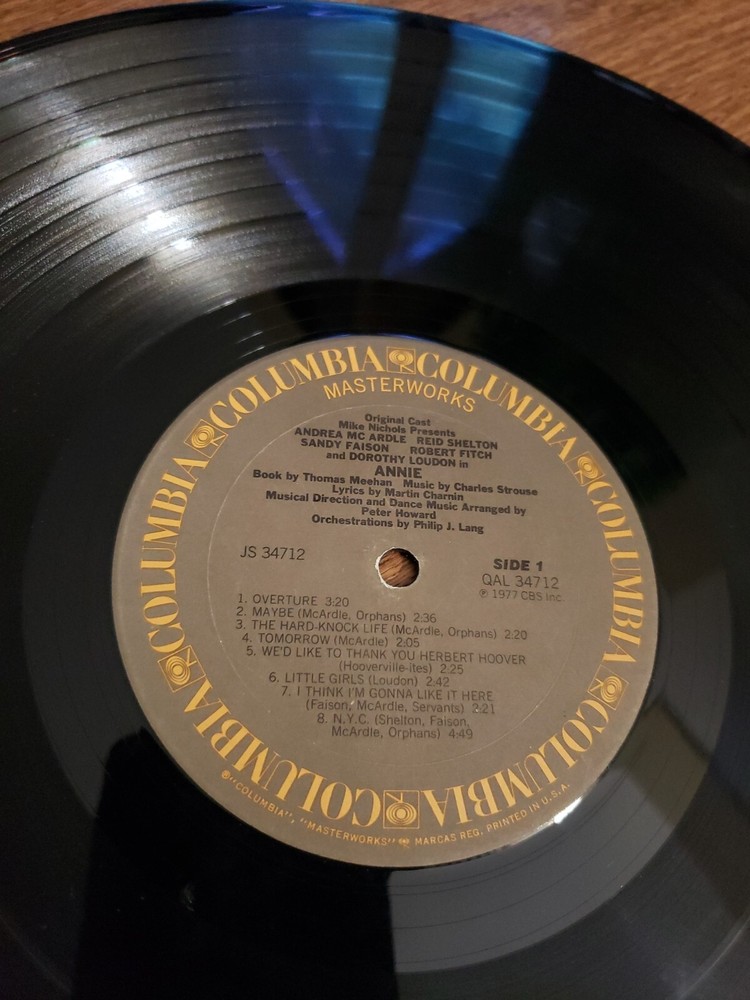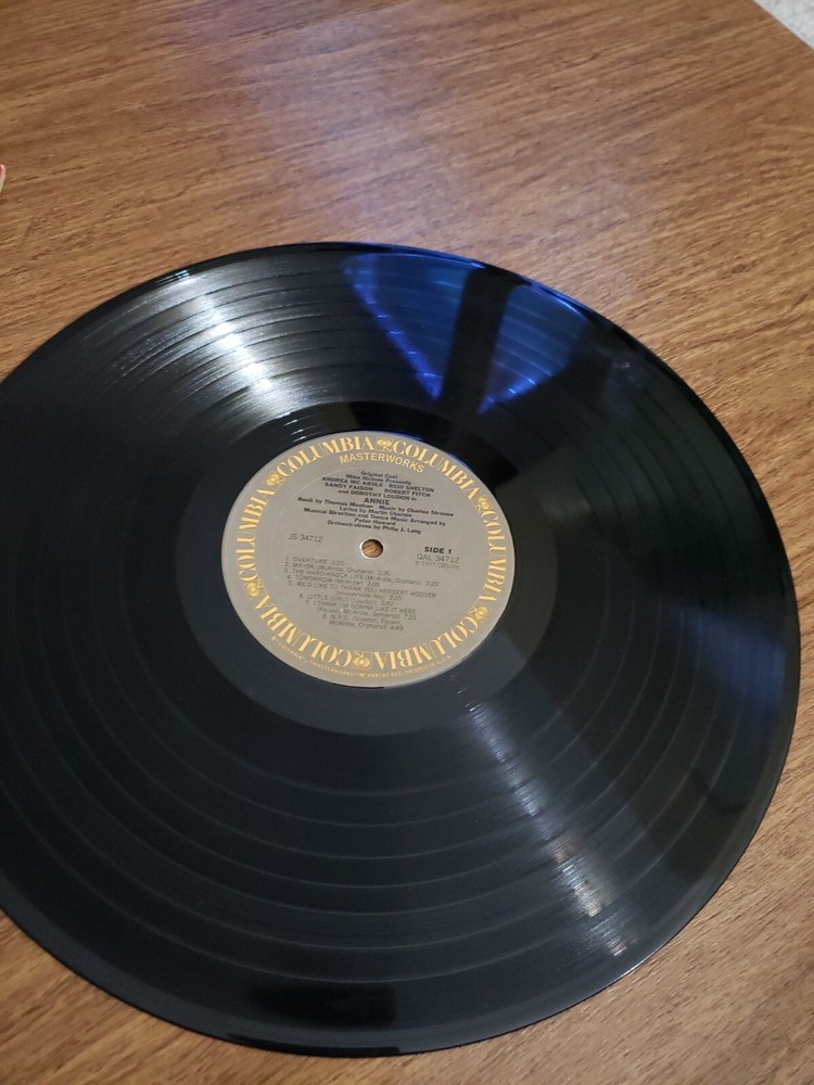 Enjoy the timeless tunes of the Annie Original Cast Recording Soundtrack Vinyl LP. This musical masterpiece features various artists and was released in 1977 under the Columbia record label. The 12" LP comes in a cardboard sleeve, making it a perfect addition to your vinyl record collection. The vinyl record is in Very Good (VG) condition but needs a cleaning while the sleeve is in Very Good Plus (VG+) condition. This LP has a speed of 33 RPM and falls under the genre of Soundtracks & Musicals. Get lost in the sweet melodies of this Annie Soundtrack release and add it to your music library today. Check out my Ebay store and other vintage hats, clothing items, golf shirts, shoes, collectibles, toys, puzzles, board games, video games, albums, scrapbooking supplies, refill pages, baseball bats and gloves, graded Gijoe figures, sports jerseys and jackets, dvds, vhs tapes, cassettes, cds, records, audiobooks, 8 tracks, electronics, perfumes and more.