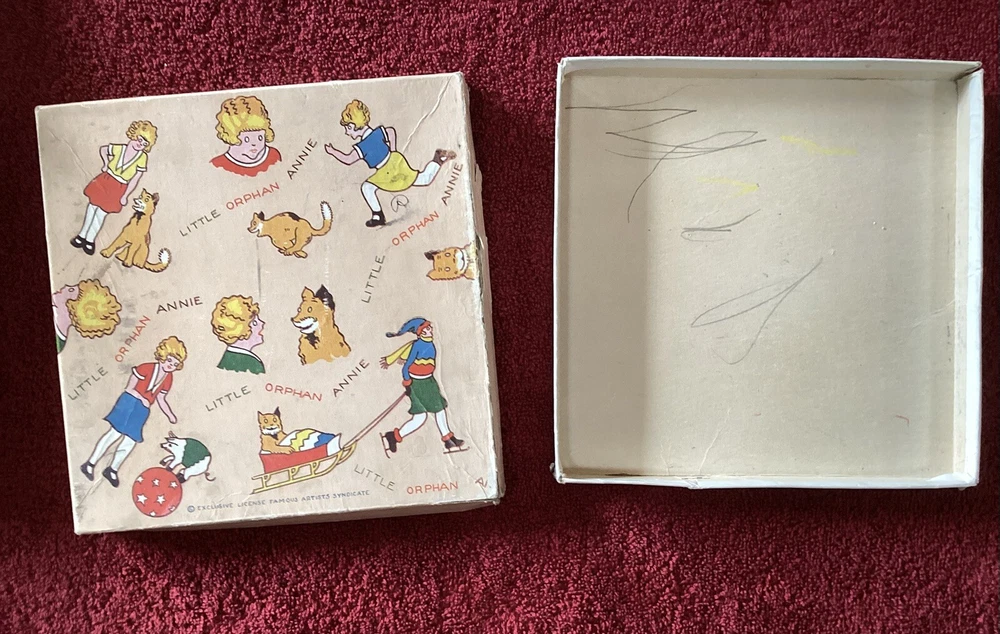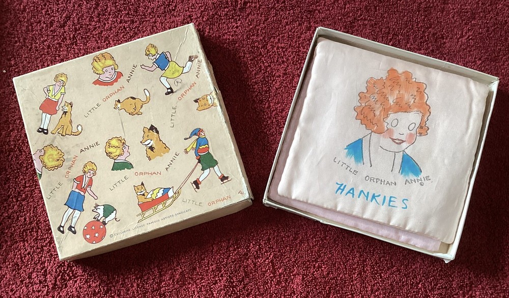 This Vintage 1930's Little Orphan Annie Hankies Keeper comes in its original box and includes 4 miscellaneous hankies. The box and the hankies are a little rough, but the keeper itself is in exceptional condition with vibrant colors. Please look closely at the pictures and ask questions before buying. Check my other listings for more great deals. Thanks for looking.