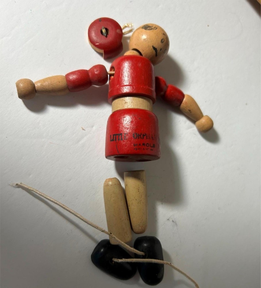 Vintage 1930's Jaymar Wood Jointed Cartoon Character Little Orphan Annie Toy Vintage 1930's Jaymar Wood Jointed Cartoon Character Little Orphan Annie Toy Vintage 1930's Jaymar Wood Jointed Cartoon Character Little Orphan Annie Unstrung Toy ..Needs restringing..Hat has some trim loss... .as is..as found..no returns VIEW PHOTOS FOR DETAIL AS THEY ARE PART OF THE DESCRIPTION...ASK QUESTIONS BEFORE BIDDING. CONDITION IS AS SHOWN IN PHOTOS PLEASE STUDY CAREFULLY: Photos are part of the item description. Need more information?? Email us your questions. We combine shipping on multiple auctions. When combining auctions please wait for invoice before checkout, so we can adjust shipping costs. Payment is required within 5 days of sale date ! If you ever have a problem with any item we sell, please contact us immediately and give us 24-48 hours to correct it. Thanks! Click on photos to super size AS THEY ARE PART OF THE DESCRIPTION and please read description carefully....please... ITEMS PICTURED ARE ENLARGED TO SHOW DETAIL AND NOT ACTUAL SIZE...PLEASE READ MEASUREMENTS IN DESCRIPTION May not be exact but very close, If you want exact please contact me....COLOR MAY VARY DUE TO MONITOR SETTINGS..HAND DISPLAY IS SMALLER THAN AVERAGE... any displays, boxes or stands are NOT included...8.025% sales tax applies to Texas residents... Listing and template services provided by inkFrog