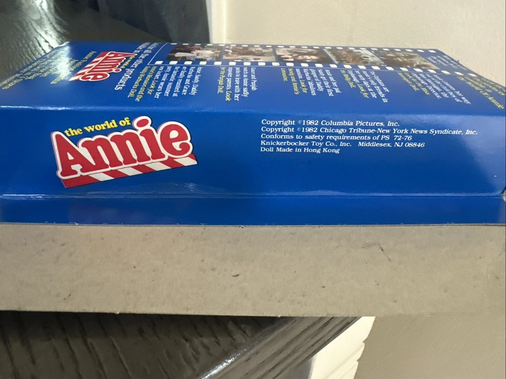 your collection today! This adorable Annie doll is a must-have for any fan—her vibrant red dress and signature curls are perfectly preserved. The original packaging adds major nostalgia, and despite minor wear, it’s in fantastic shape for its age. A true treasure for collectors or anyone who loves the charm of vintage toys!