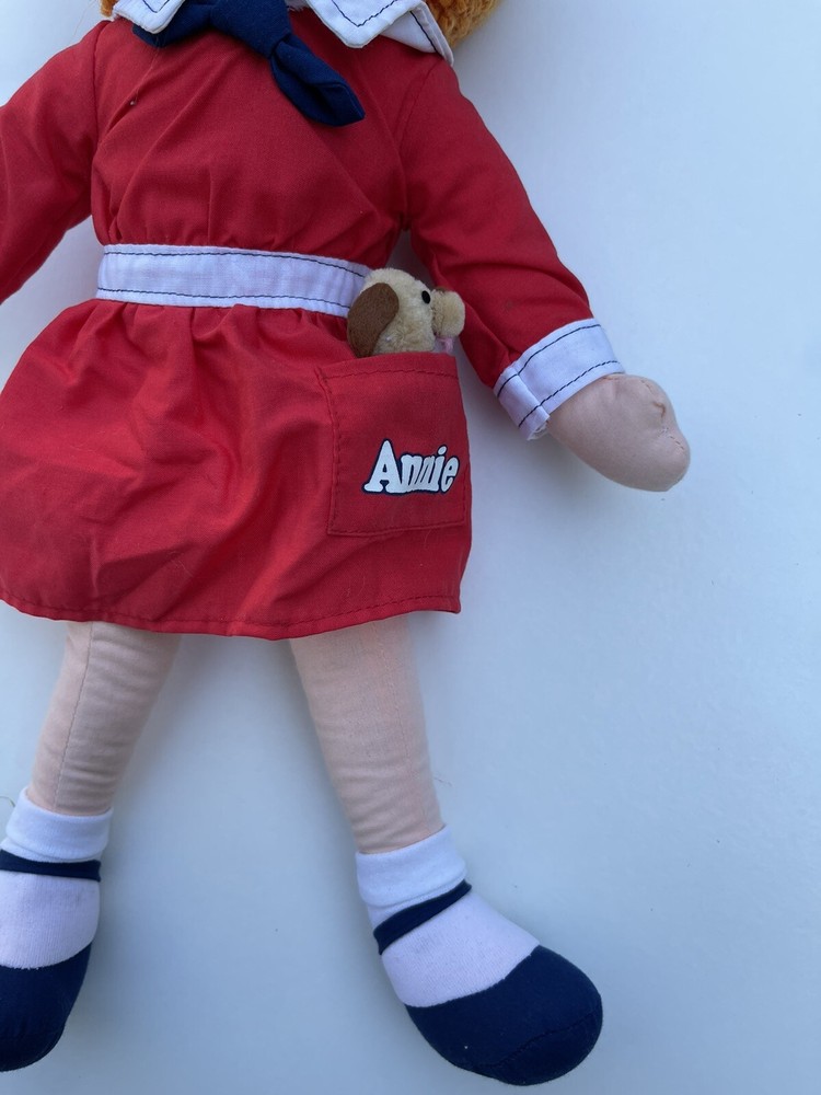 Vintage Annie plushi doll with adorable little dog in her pocket. The brand is Knickerbocker “Toys that love you back”. In great condition no rips, stains, or tears. Pet/Smoke free home.