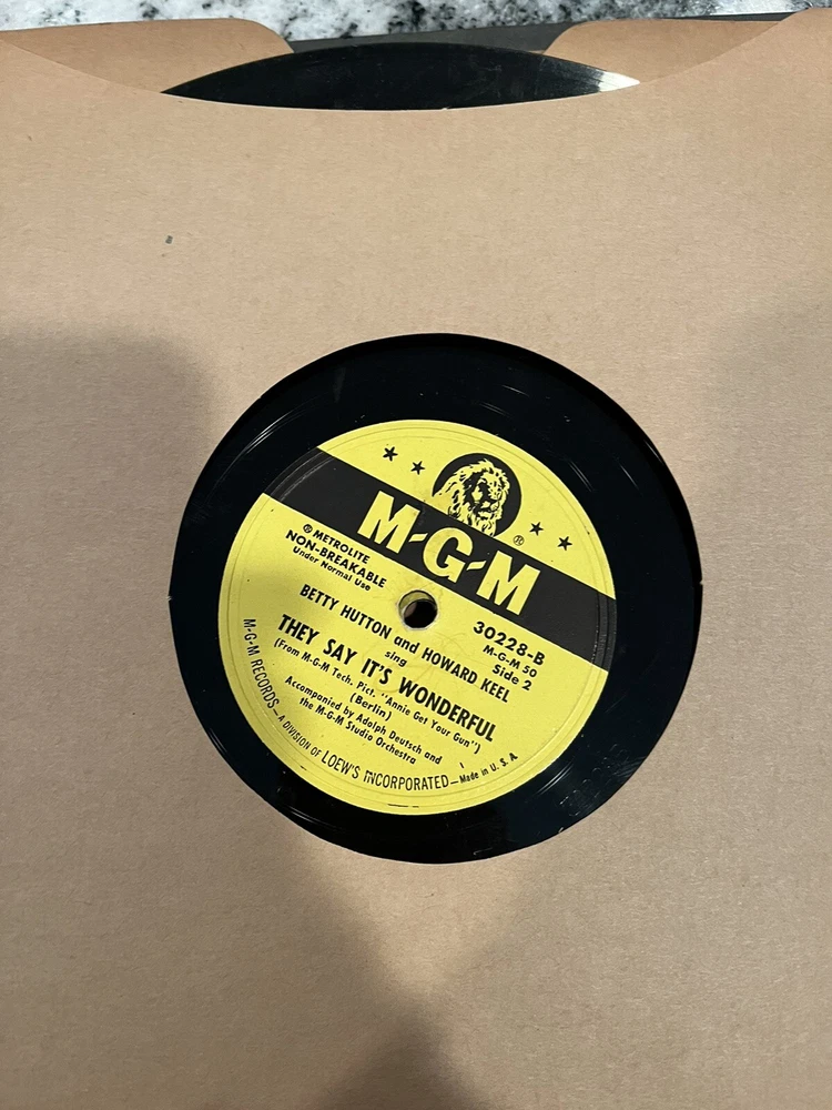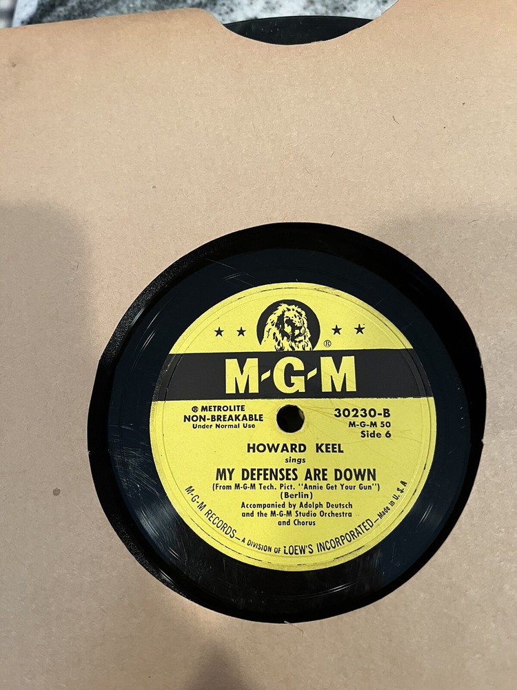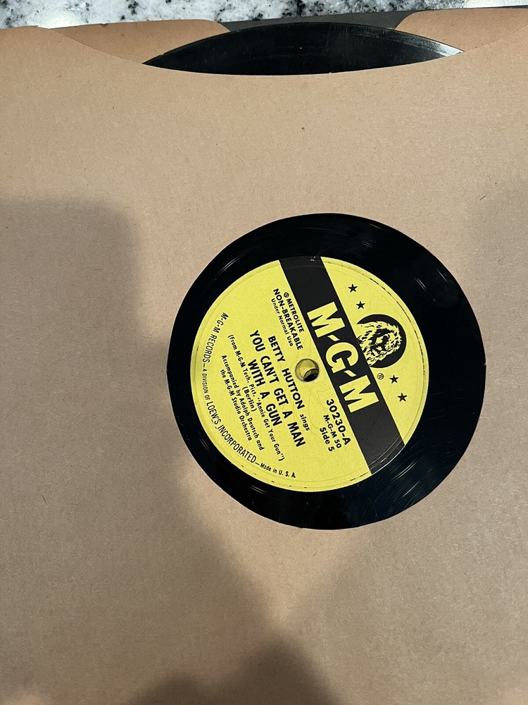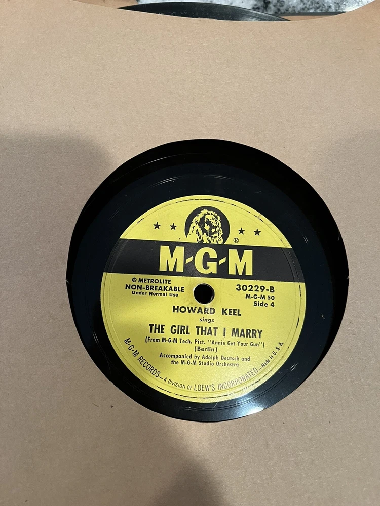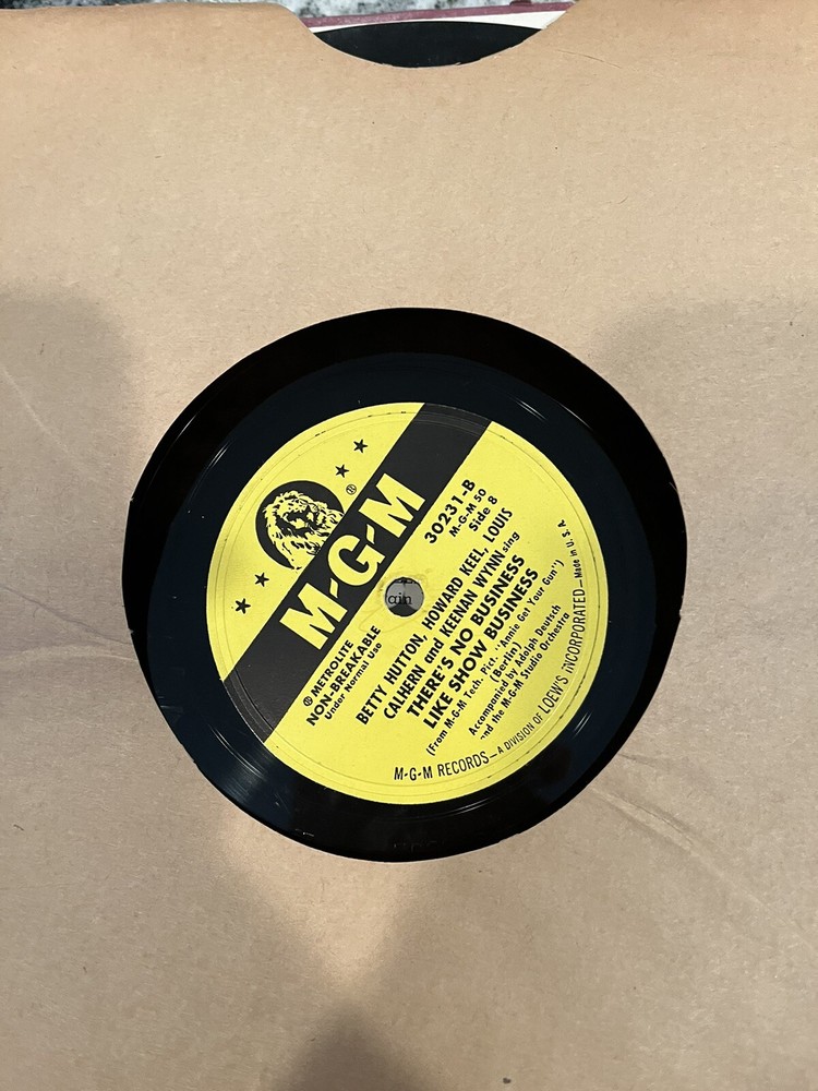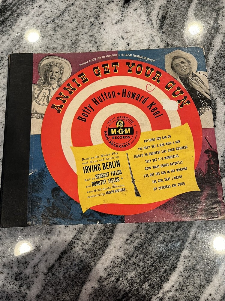 This vintage box set features the Annie Get Your Gun musical soundtrack on 4 high-fidelity vinyl records with a 33 RPM speed. The original cover is included. The set includes music composed by Irving Berlin and conducted by Adolph Deutsch, featuring performances by Betty Hutton, Howard Keel, and the MGM Studio Orchestra. Released in 1963 by MGM Records, this Country & Western Music Jamboree edition is a must-have for collectors of vinyl records.