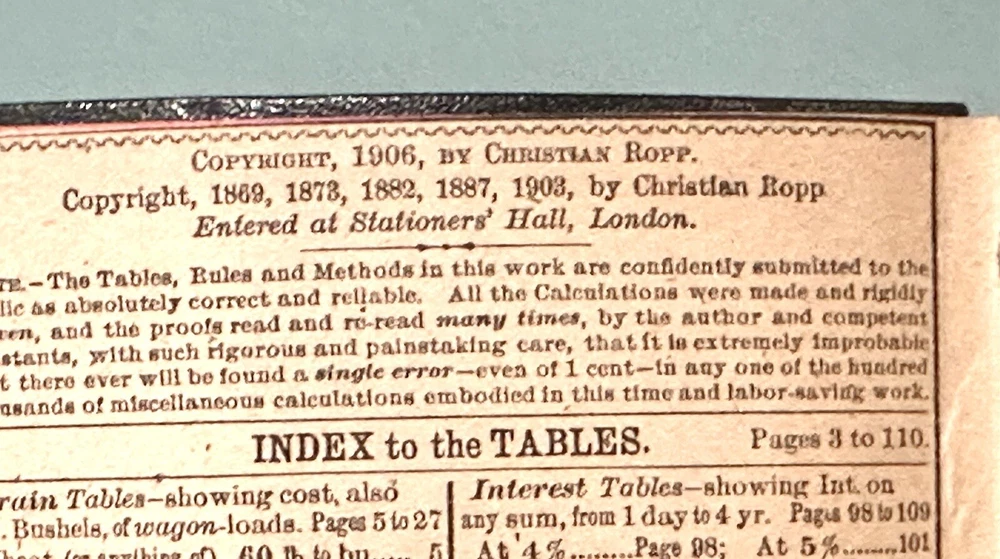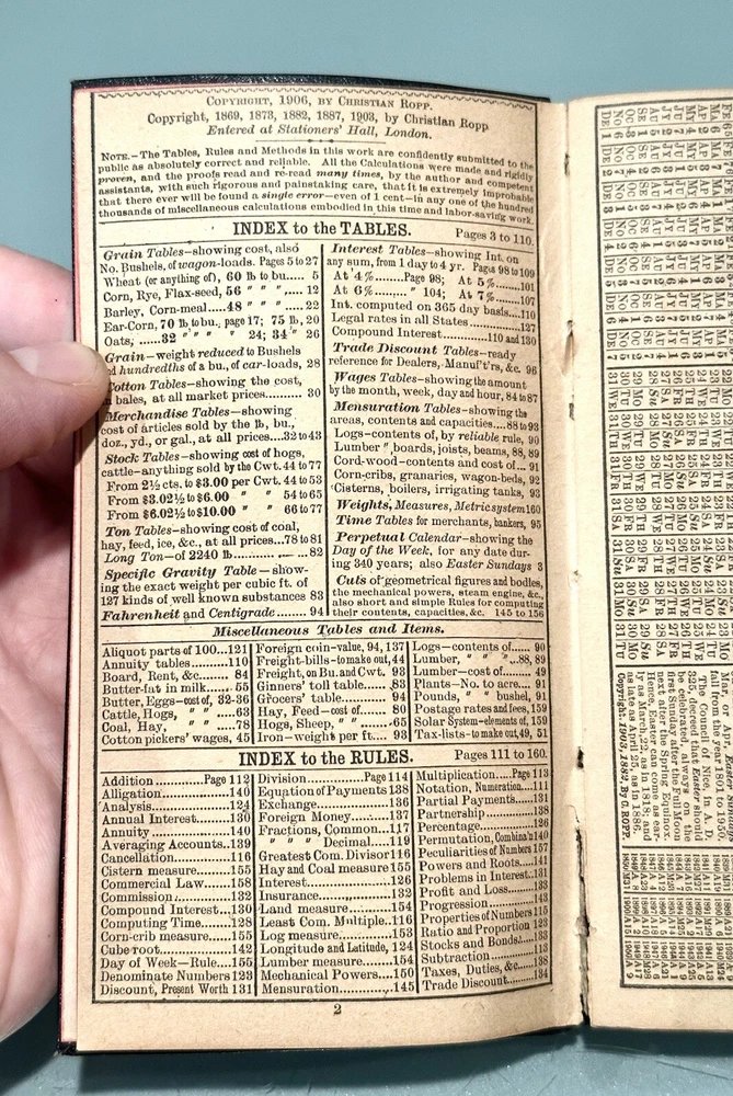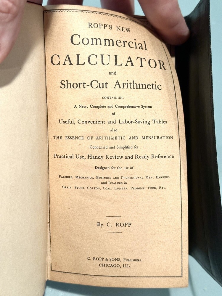 Up for sale is a Vintage Antique early 20th century 160 pages of useful business information Ropp’s New Commercial Calculator Leather Bound Book Notebook. Measuring 3 3/4” by 6 1/2”. Please see photos as part of the description. The golden stand is not included in the sale. Please check out our other listings! Thousands of items in stock! We ship worldwide! Free US shipping and returns!