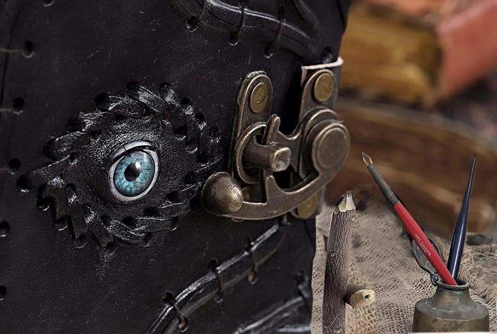 Vintage Hocus Pocus Spell Book Leather Journal with Evil Eye 6X8 Witchy Diary Gift