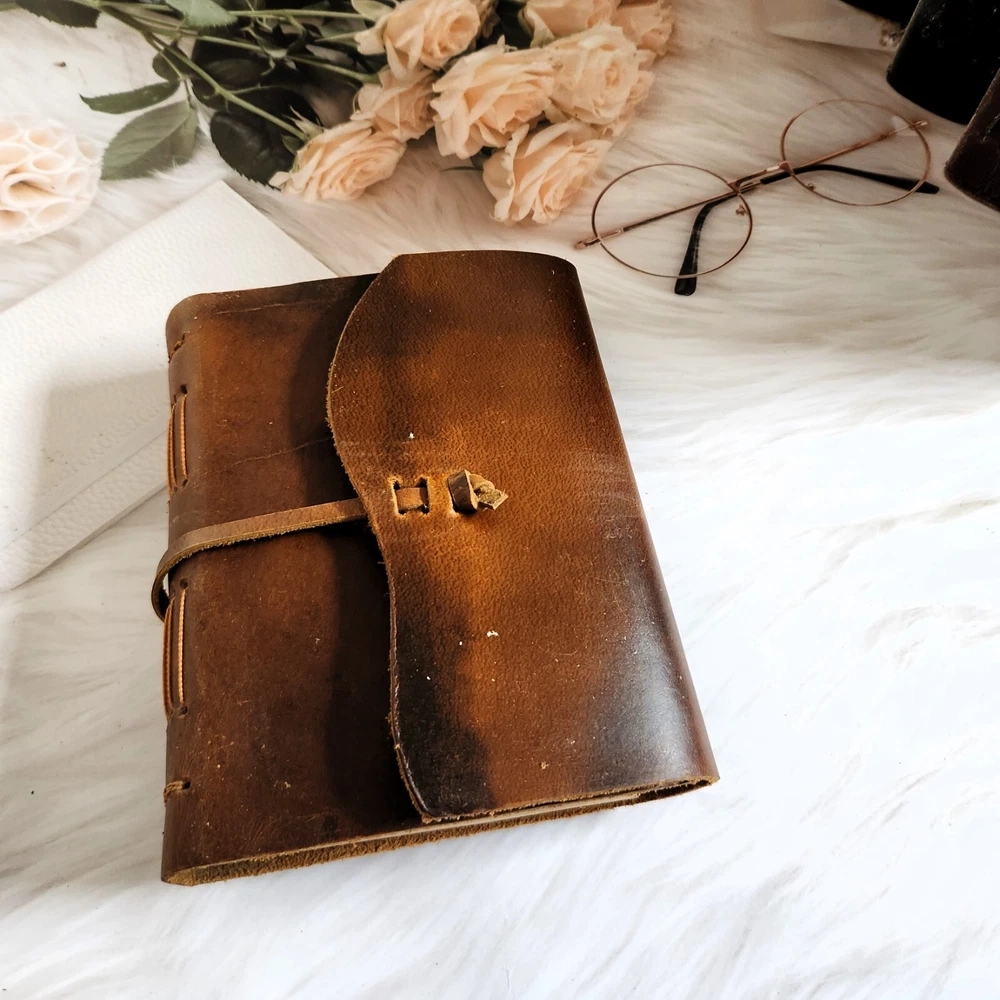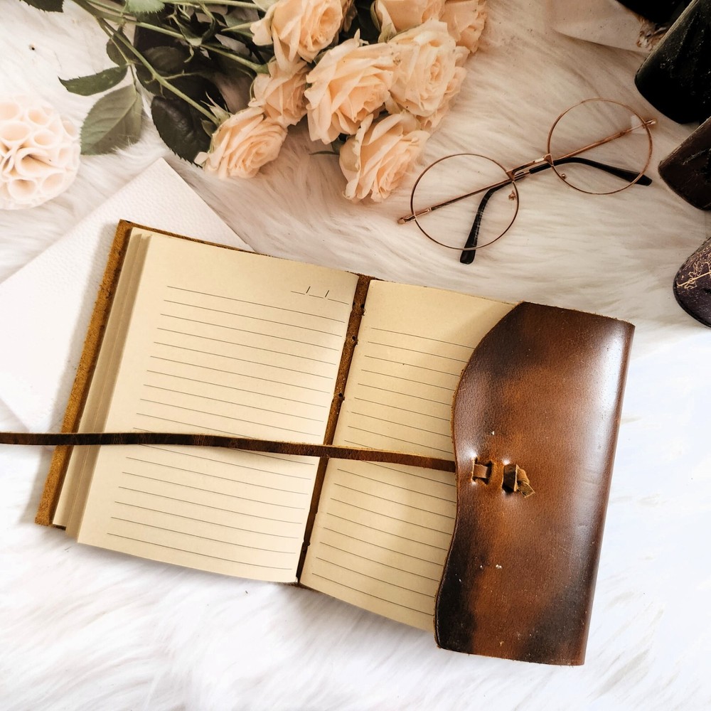 This vintage brown leather journal is a timeless piece that exudes elegance and sophistication. Crafted from 100% recycled leather, the cover is not only environmentally friendly but also durable, ensuring that your thoughts and memories are well-protected. The 210 line paper provides ample space for writing, sketching, or even creating a dream journal. The leather lace closure adds a touch of rustic charm, making it a perfect accessory for any writer or artist. Available in two sizes, 7x5 inch and 8x6 inch, this brown leather journal is versatile and suitable for various needs. Whether it's used as a writing journal, sketchbook, leather diary, or dream journal, this timeless piece is a thoughtful and practical gift for any occasion. Its classic design and high-quality materials make it a perfect wedding gift, ensuring that the newlyweds can document their journey together in style.