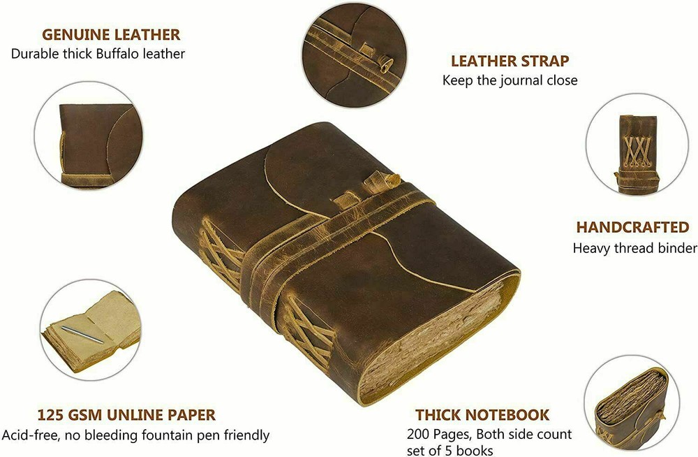 This vintage leather journal is absolutely stunning! The genuine buffalo leather feels rich and durable, while the deckle-edge paper adds a charming old-world touch. The craftsmanship is impressive—every detail, from the natural tanning to the handmade stitching, makes it feel truly special. Perfect for writers, travelers, or anyone who appreciates timeless quality. I love the rustic yet elegant look—it’s a joy to write in and will only get better with age. A must-have for journal lovers!