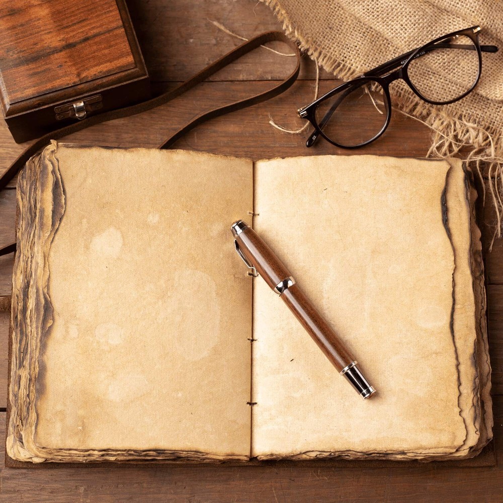 Vintage Leather Journal - Burnt Deckle Edge Paper - Handmade Leather Bound Book of Shadows - Sketchbook for Drawing - 240 Pages (9" x 6") Product Details Size: 9" x 6" Brand: NomadCraftsCo. MPN: NCRCO-Vintage-Burnt UPC: 704137794954 EAN: 0704137794954 Brand: NomadCraftsCo. Color: Brown Material: Leather Sheet Size: 9 x 6 inches Paper Finish: Watercolor Brand: NomadCraftsCo. Color: Brown Material: Leather Sheet Size: 9 x 6 inches Paper Finish: Watercolor Product Dimensions: 9"L x 6"W Recommended Uses For Product: Sketching, Drawing, Watercolor, Calligraphy Sheet Count: 240 Paper Weight: 16.3 UPC: 704137794954 Number of Items: 1 Manufacturer: NomadCraftsCo. Unit Count: 1 Count Item Weight: 1.3 pounds Item model number: NCRCO-Vintage-Burnt Cover Material: Leather Material Type: Leather Size: 9" x 6" Ruling: Plain Manufacturer Part Number: NCRCO-Vintage-Burnt Date First Available: February 29, 2020 BURNT ANTIQUE PAPER - Our newest Vintage Paper Leather Journal is made of unique burnt vintage paper which looks like it was pulled from history. You will love the old looking burnt handmade cotton paper (240 pages) which is unique to our vintage journals. USE ANY KIND OF PEN - Sketch, Doodle, Write on your journal notebook with a Calligraphy Pen Fountain Pen, Brush Pen, Ball Pen, Acrylic Colours, Watercolor and many more. PREMIUM SOFT SUPPLE THICK GENUINE LEATHER - The Nomad Leather Journal is made from cruelty free naturally tanned full grain Leather which feels and smells Amazing. It's soft and very comfortable in the hands. Don't be fooled with competitors using cheap substitutes, this is the real deal. STYLISHLY MEDIEVAL - Ancient looking rustic burnt cotton paper combined with the beauty of distressed leather, hand stitched by Artisans, creates a keepsake you will cherish forever. Makes a great gift for the men, women, and wiccans in your life! STURDY BINDING AND LEATHER WRAPAROUND - Sturdy hand stitched binding to make sure that no paper comes out loose from your vintage notebook . The leather wraparound keeps the papers of the journal safe and secure.