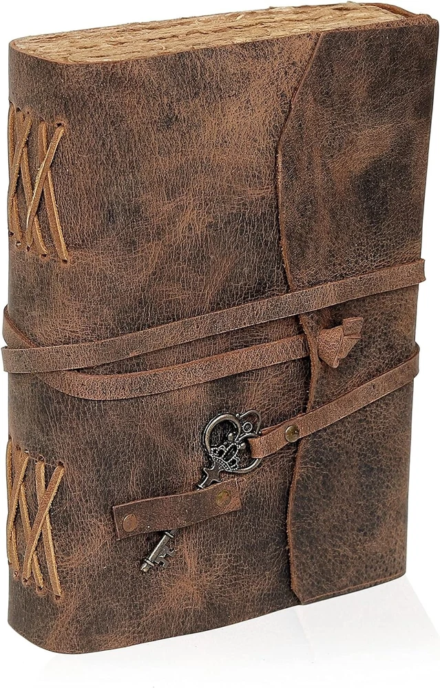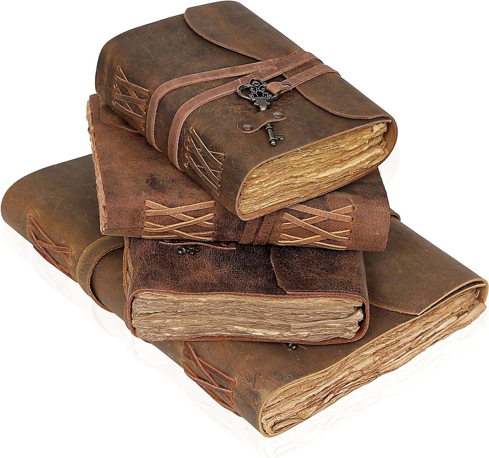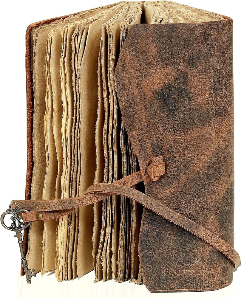 cuero Vintage Leather Journal - Antique Handmade Leather Bound journal with deckle edge paper for Men And Women Diary - Leather Sketchbook - Drawing Journal Notebook - Great Gift (5 by 7 inch) About this item PERFECT HANDCRAFT JOURNAL - Made from 100% Buffalo Leather with Antique Deckle Edge Paper. This Book Is Hand Crafted by Artisans Working with Leather for Decades. The Color of The Journal Is Very Unique Vintage Brown. USE ANY KIND OF PEN - Write/sketch/doodle on your journal notebook with a Fountain Pen CalligraphyPen, Ball Pen, Brush Pen, Acrylic Colours, Watercolor. IDEAL USE AND PERFECT GIFT – Perfect Use for Business Executive, Poetry Work, Journalists, Craftsman, Writer. A Lovely Treat for Your Loved Ones for An Anniversary, Birthday or Graduation Present, Or for Someone Starting A New Adventure and A Perfect Gift for Those Who Love Vintage One. DIMESNIONS – (7” X 5” X 1.5”) With Uncut Deckle Edge Paper, Easily Handle Notebook, You Can Fit with Minimum Space, Easily Handle in Long Journey. Once You Have Used It You Will Feel Like You Have the Best Journal in the World. BINDING AND KEY BOOKMARK – Binding Is Made by Hand Stitching Which Having Enough Strength That the Paper Never Comes Out. The Key Is Very Antique Can Be Used as Bookmark. The Leather Strap Wrap Around the Journal Is Complete Solution for Paper Safety and Open-Close the Journal. The Journal Made by High Quality Buffalo Leather and Paper Have Been Used Is Vintage Historical Paper Which Is Very Durable. OUR GUARANTEE - If for any reason you don’t love the Wanderings vintage notebooks please let us know and we’ll send you a refund - no questions asked. It is as simple as that! Shipping Fast and free shipping Payment safe payment via ebay 30 Day's returns Have a great holiday season !