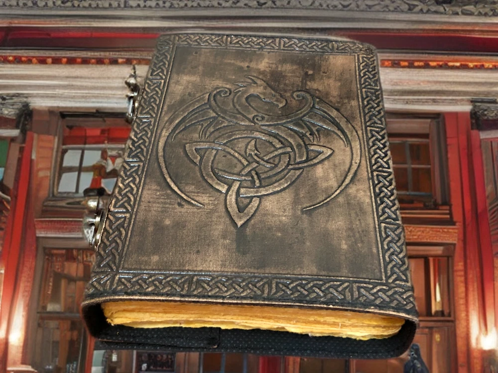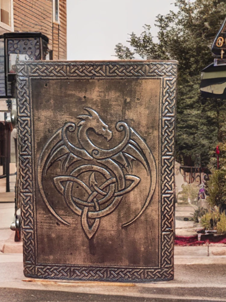 ✅UNIQUE HANDMADE VINTAGE PAPER - Vintage Journal is made with 200 pages of Antique Paper which looks like it was pulled from history. You will fall in love with the the antique handmade cotton paper which is unique to our Vintage Journal Notebook. ✅EXQUISITE & UNIQUE WITCH SEVEN STONE: The vintage journal is Antique color embossed which helps to reveal inner truth within yourself and encourage self-awareness and self expression. We have taken extra to make sure that the emboss is perfect in every piece.\ ✅VINTAGE LOCK AND STURDY BINDING - The vintage lock will keep all your valuable writing locked inside.Sturdy hand stitched binding to make sure that no paper comes out loose from your vintage notebook. ✅USE ANY KIND OF PEN - Sketch, Doodle, Write on your Leather Bound Journal with a Calligraphy Pen Fountain Pen, Brush Pen, Ball Pen, Acrylic Colours, Watercolor and many more. ✅MANY USES - Can be used as a notepad, journal, writing notebook, sketch book. 1.25 inch thickness, easy for handwriting, drawing or sketching and compact for carrying in your bag. Ideal for alternative Artist Sketchbooks, Photo Album, Traveling Notes, Business Executive, Logbook, Poetry Work, Journalists, Food Planner, Instagram Scrapbook and Bible Journaling. \ ✅A journal is more than just a blank canvas; it's a trusted confidant where memories are stored. Whether it's for your spouse, or a passionate writer in your family, this diary makes a thoughtful and timeless gift. Makes a great gift for father's day, Mother's Day, Valentines, Graduation or any event that calls for a gift. Perfect for those seeking inspiration, or simply cherishing the power of written word, it's a gift that transcends time.