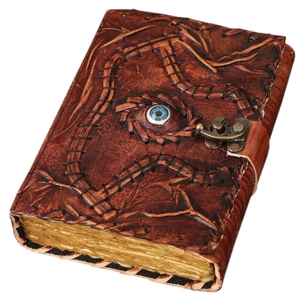 Hocus Pocus Book Antique Book of shadows Blank journal hocus pocus Eye Journal - leather notebook is made with 200 pages of Antique Deckle Edged Paper which looks like it was pulled from history. You will fall in love with the the antique handmade vintage paper which is unique to our spell book EXQUISITE & UNIQUE EYE STONE - Leather Bound Journal is antique made with a special stone called “Eye” which helps to reveal inner truth within yourself and encourage self-awareness and self expression. We have taken extra to make sure that the emboss is perfect in every piece. USE ANY KIND OF PEN - Sketch, Doodle, Write on your Leather Blank Spell Journal with a Calligraphy Pen Fountain Pen, Brush Pen, Ball Pen, Acrylic Colours, Watercolor and many more. We guarantee no bleed through. VINTAGE LOCK AND STURDY BINDING - The vintage clasp lock will keep all your valuable writing locked inside.Sturdy hand stitched binding to make sure that no paper comes out loose from your vintage notebook. Many Uses - Can be used as a notepad, journal, writing notebook, sketch book. 1.25 inch thickness, easy for handwriting, drawing or sketching and compact for carrying in your bag. Ideal for alternative Artist Sketchbooks, Photo Album, Traveling Notes, Business Executive, Logbook, Poetry Work, Journalists, Food Planner, Instagram Scrapbook and Bible Journaling. Unique Clasp Lock Easy To Open - Stylishly Medieval - Ancient looking rustic cotton unlined paper combined with the beauty of distressed leather, hand stitched by Artisans, creates a keepsake you will cherish forever. Makes a great gift for the men, women, and wiccans in your life! 1. PAYMENT POLICY Payment should be cleared within 3 days of sale and we prefer payments through eBay Payment Options. 2. SHIPPING POLICY Item will be delivered Worldwide by Registered Airmail Service (India Post, DHL Express, FedEx) which may take 10 to 15 days but we assume a maximum of 30 business days to deliver it. We also provide Speed Post Shipping Service (EMS) for this service you need to pay shipping charges as per the item weight and country location. It will certainly reach much faster than the usual Airmail Service. 3. CUSTOM POLICY Import duties, taxes and charges are not included in the item price or the shipping charges. These charges are the buyer's responsibility. Please check with your local customs authority to determine these additional costs prior to bidding or buying. 4. RETURN POLICY In case of any problems after receiving the item, please contact within 7 days and only the purchase amount will be refunded not the postage amount. One-side postage for returning the item will be paid by the buyer. Money will be refunded by eBay Payment Options after the item is received. 5. LEGAL DISCLAIMER While we work, we ensure that product information is correct and the real product will as similar as it looks in the picture but sometimes it may look slightly different from real because sometimes manufacturer changes the packing. So please understand this fact & if you have any query related to this, feel free to reach us. 6. FEEDBACK POLICY Please do not leave a negative feedback as a way to communicate. Any rating given to a seller can neither be changed nor modified. So better communicate for faster resolution to any disputes. If you have any concerns regarding your purchase please contact, satisfactory resolution will be reached. If you like our product tell others, if not tell us, we will do our best to deliver as per commitment. Our first priority is buyer's satisfaction and we always ready to take every possible step in buyer's favor. 7. CONTACT US For any query, we request you to either use the ask question button, normally we reply back on the same day or the next working day or you can mail us reply time for emails is 12-24 Hours. We are available 24*7 at your service. IMPORTANT NOTES 1. To discuss BULK ORDERS contact us anytime 24*7 and we definitely revert within 12-24 hrs. 2. Please share a POSITIVE FEEDBACK if you are satisfied with our product/service after delivery. 3. Do Not Leave a NEGATIVE FEEDBACK or Do Not Open INR/INAD Request; just send us a message if you have any issues with our product or service. It cannot be removed and will not give any benefit to you as well. We are 24*7 available for satisfactory resolution. 4. Please ensure that there is SOMEONE TO RECEIVE THE PARCEL ON YOUR ADDRESS OF DELIVERY. If there is no one to receive the parcel at the time of delivery, the postal/courier service will leave a note at your home and you will have to pick up the parcel from the post office yourself by providing the registration number and proof of your identity. If the parcel is not picked up after the time period, it may be returned back to us as unclaimed. ""THANK YOU"" Track Page Views With Auctiva's Counter