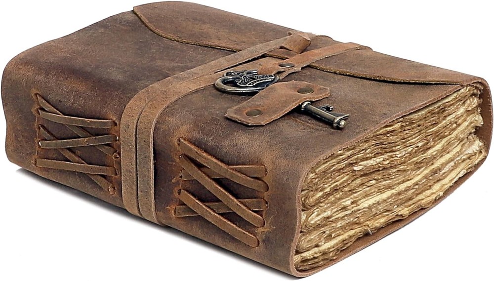 PERFECT HANDCRAFT JOURNAL - Made from 100% Buffalo Leather with Antique Deckle Edge Paper. This Book Is Hand Crafted by Artisans Working with Leather for Decades. The Color of The Journal Is Very Unique Vintage Brown. DIMESNIONS - (9” X 6” X 1.5”) With Uncut Deckle Edge Paper, Easily Handle Notebook, You Can Fit with Minimum Space, Easily Handle in Long Journey. Once You Have Used It You Will Feel Like You Have the Best Journal in the World. USE ANY KIND OF PEN - Write/sketch/doodle on your journal notebook with a Fountain Pen CalligraphyPen, Ball Pen, Brush Pen, Acrylic Colours, Watercolor. IDEAL USE AND PERFECT GIFT – Perfect Use for Business Executive, Poetry Work, Journalists, Craftsman, Writer. A Lovely Treat for Your Loved Ones for An Anniversary, Birthday or Graduation Present, Or for Someone Starting A New Adventure and A Perfect Gift for Those Who Love Vintage One. BINDING AND KEY BOOKMARK – Binding Is Made by Hand Stitching Which Having Enough Strength That the Paper Never Comes Out. The Key Is Very Antique Can Be Used as Bookmark. The Leather Strap Wrap Around the Journal Is Complete Solution for Paper Safety and Open-Close the Journal. The Journal Made by High Quality Buffalo Leather and Paper Have Been Used Is Vintage Historical Paper Which Is Very Durable.