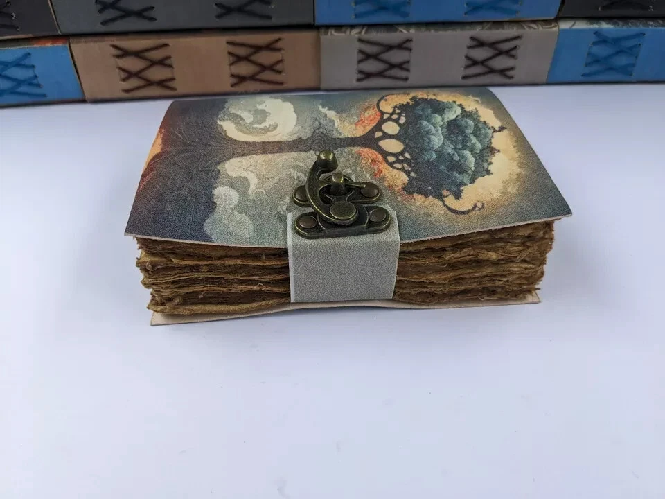 This vintage paperback notebook is a one-of-a-kind item that is perfect for collectors and enthusiasts alike. The cover is made of high-quality leather and features intricate detailing that add a touch of elegance to the overall design. The notebook is handmade and has special attributes that make it a unique addition to any collection. The unit type is a unit and the brand is DIVYA VINTAGE CRAFT. The notebook is made in India and has a unit quantity of one. It is a great item for those who are looking for a vintage diary or journal. The notebook is perfect for blank diaries and journals, calendars and planners, and office supplies. It is a must-have for those who love antique and handmade item Product Description: Features: * Material: Leather & Recycled Paper. * Size: approx. (5x7) inches * 200 pages ( Both side) of handmade Deckle Edge Cotton Paper, made from recycled cotton. * Eco-friendly. * Handmade. * Brand New. * A very beautiful gift for yourself or your friends. * Great diary, travel journal and notebook.