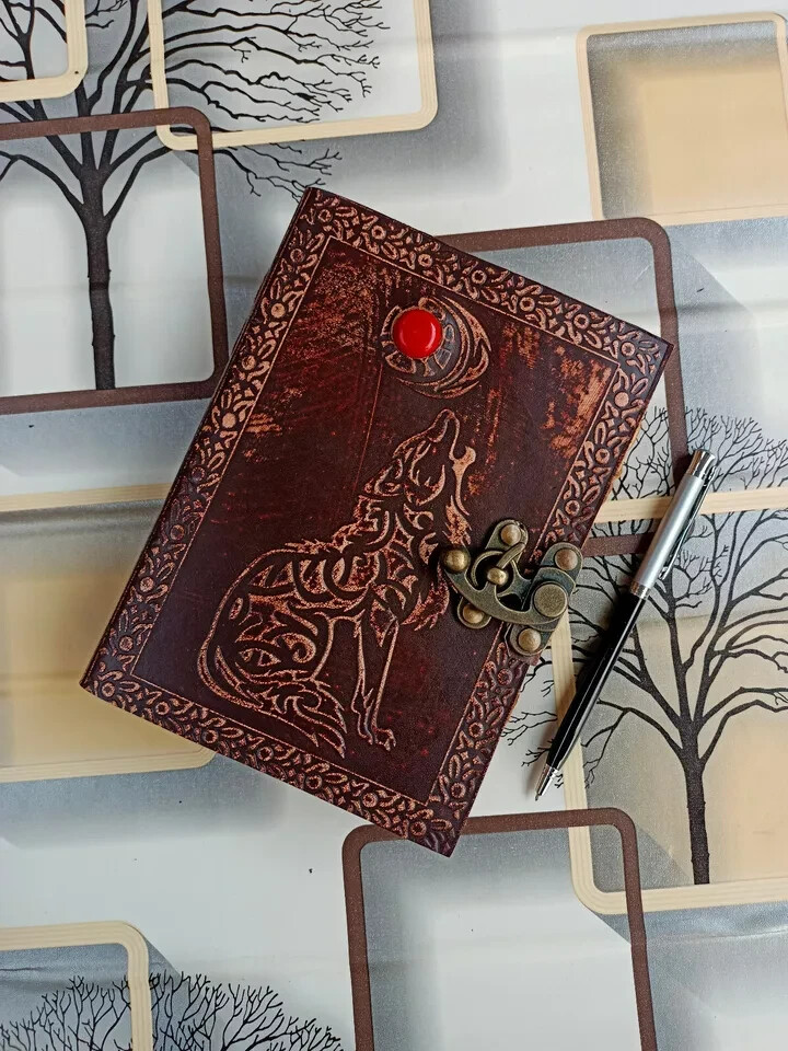Welcome To My Store This vintage leather bound journal is a true masterpiece . The notebook is made of antique handmade paper which adds to its uniqueness. It features a beautiful leather cover that makes it a perfect gift for anyone who loves vintage items. The journal comes with a unit quantity of 1 and is ideal for use as a diary, sketchbook, or planner. It is designed to provide the user with an excellent writing experience. This journal is an excellent addition to any office or workspace. It falls under the categories of blank diaries & journals, calendars & planners, office supplies, office, and business & industrial. The notebook is made in India and has special attributes that make it stand out from other journals. Without a doubt, this notebook is a must-have for anyone looking for a unique and vintage writing experience. Grab yours today! * Material: Leather With Stone * Colour : Multi * Lock : .brass Vintage Lock * pages : handmade Vintage Antique Deckle Edge Recycled paper . * Size: (7 x 5 x 1'5. inches) * pages :200