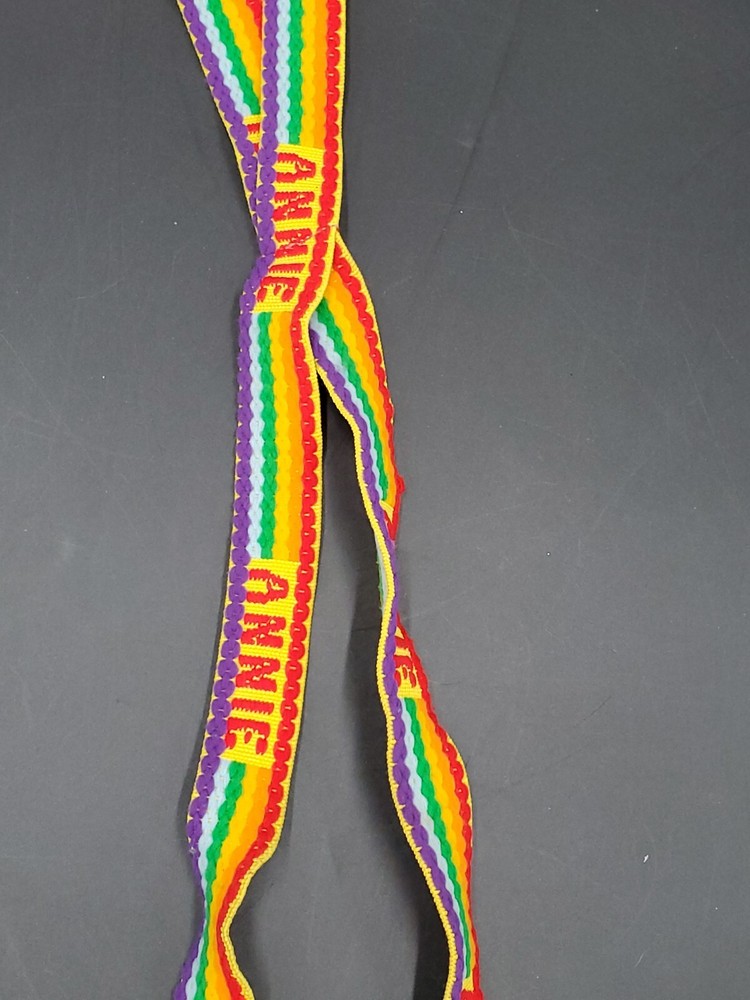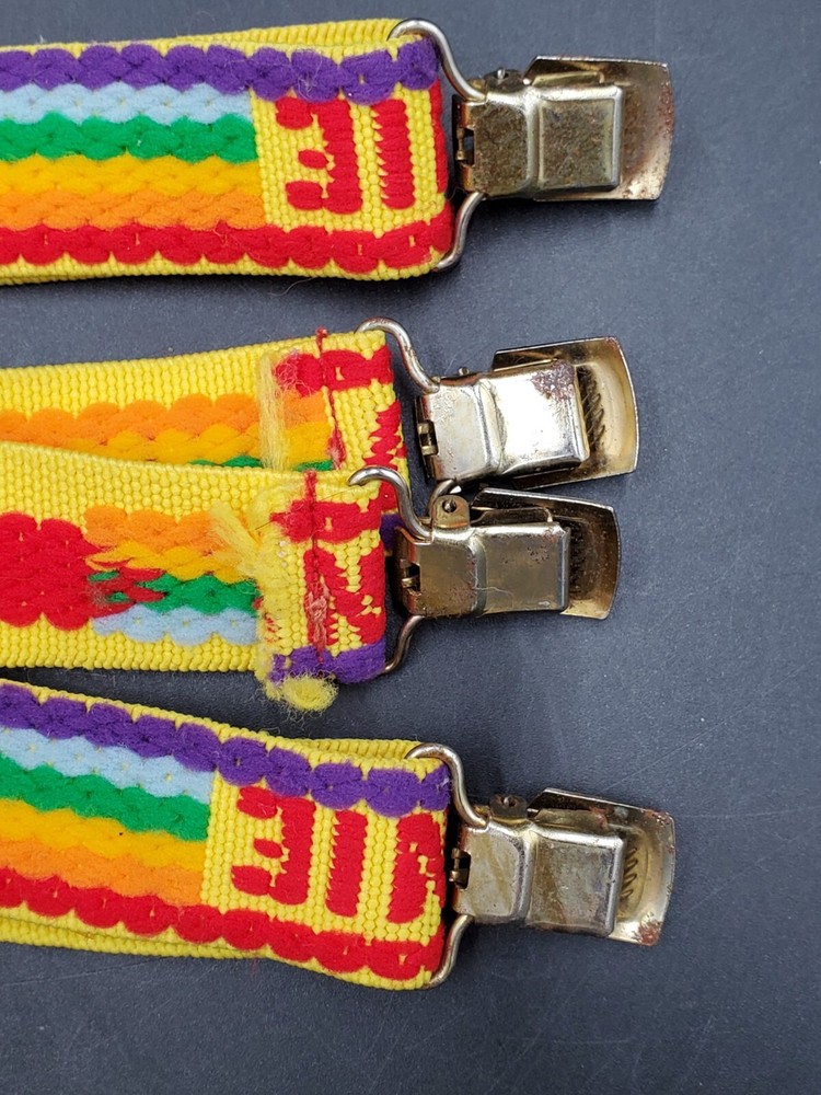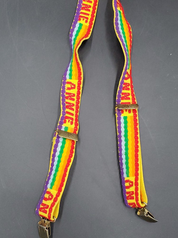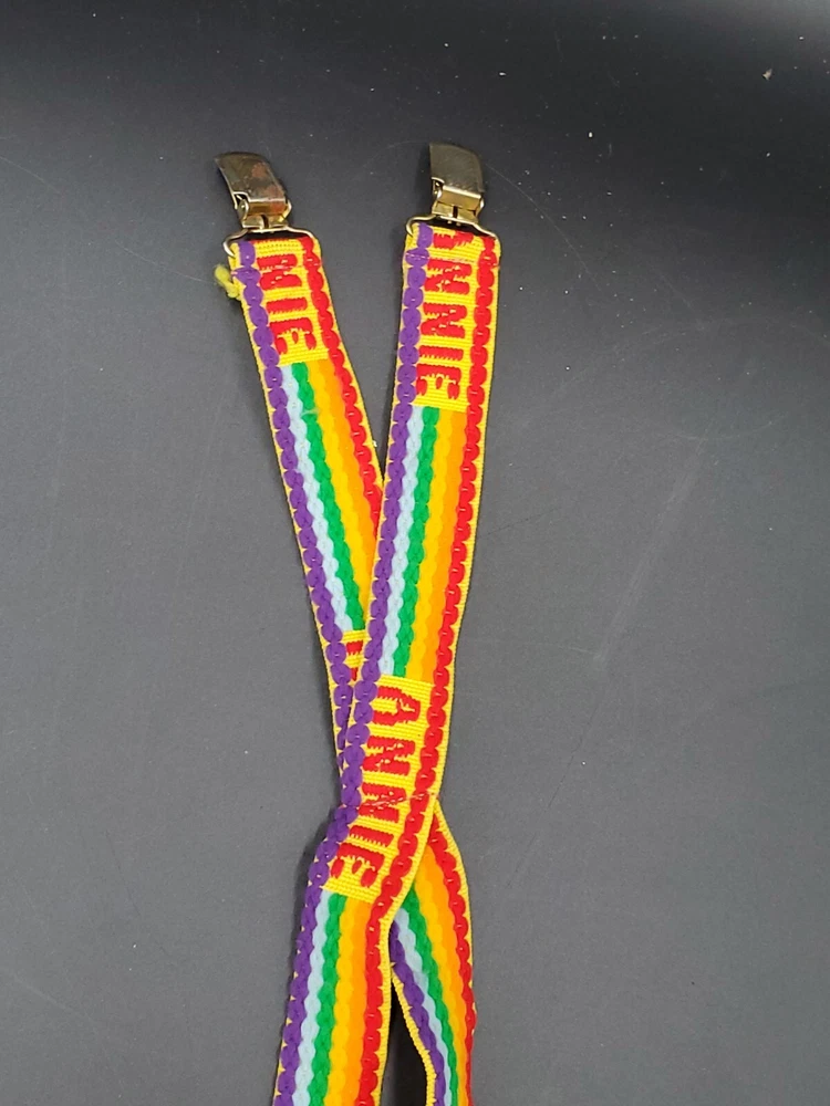 Vintage 1980s Little Orphan Annie Rainbow 🌈 elastic Suspenders Pride LGBTQ Broadway great for costume, Halloween, or every day fun!