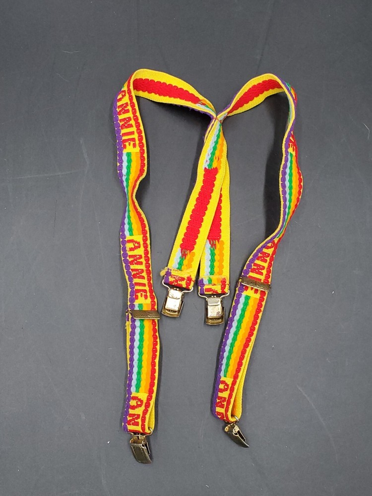 Vintage 1980s Little Orphan Annie Rainbow 🌈 elastic Suspenders Pride LGBTQ Broadway great for costume, Halloween, or every day fun!...
