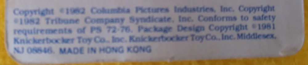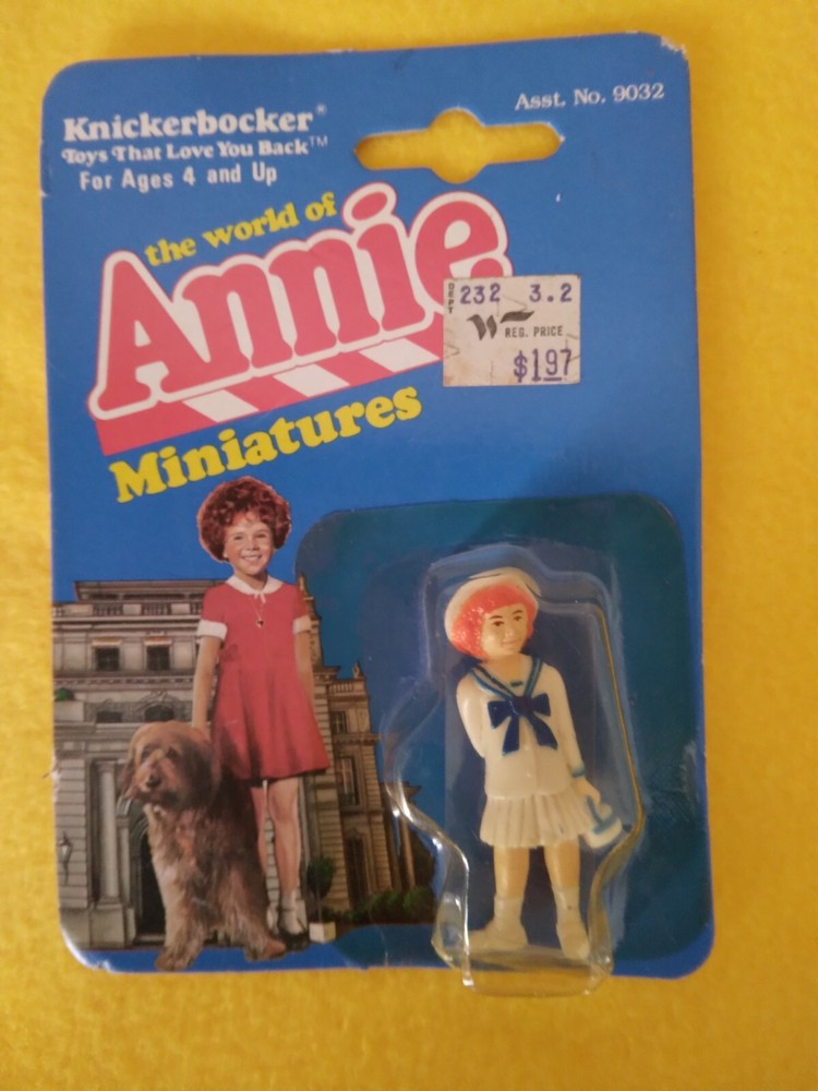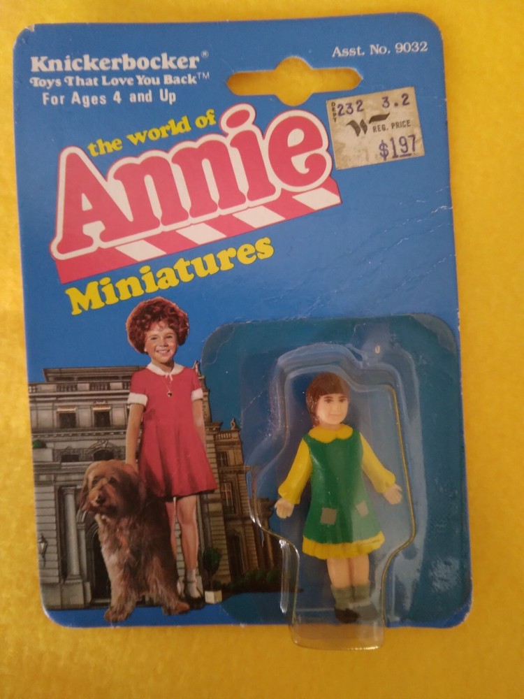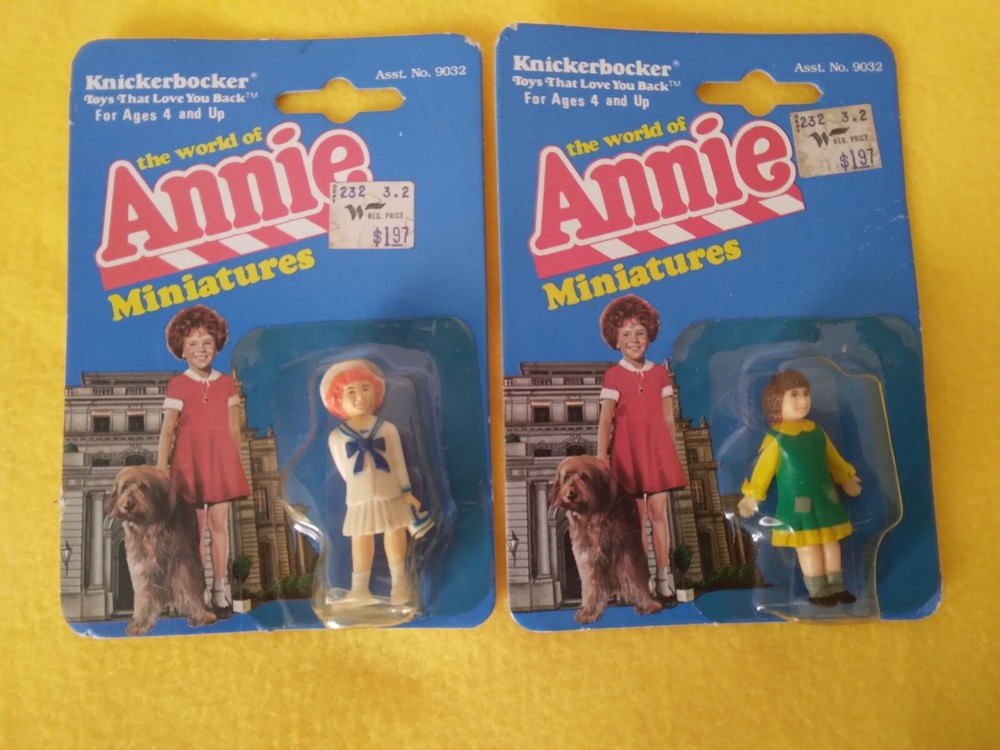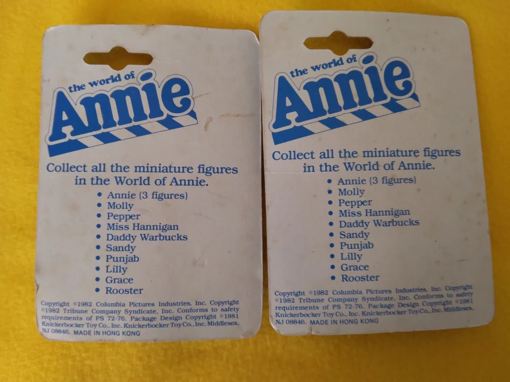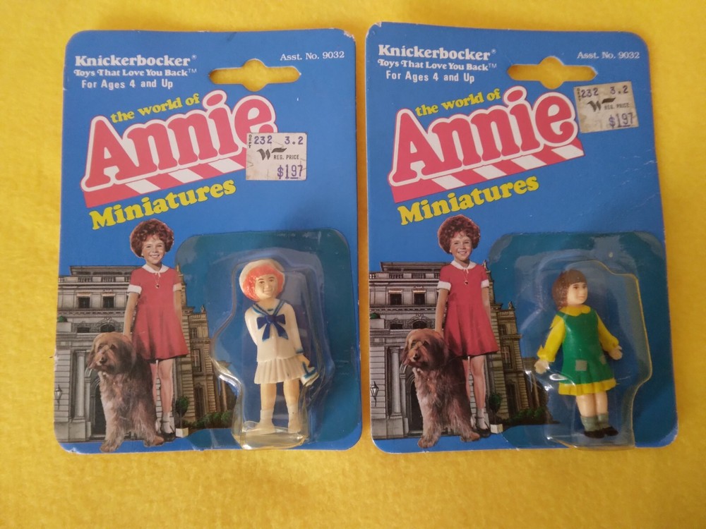 1117-1012-005 Vintage Lot of 2 Orphan Annie Miniatures Annie & Mollie Knickerbocker 1982 NEW OLD STOCK Packaging is in good condition with the original Woolworth's price sticker still on the front. Some fraying to the edges. Great pieces for the collector. 40 years looks good on them both.