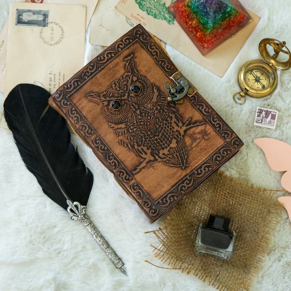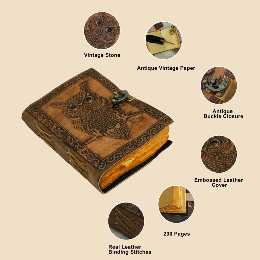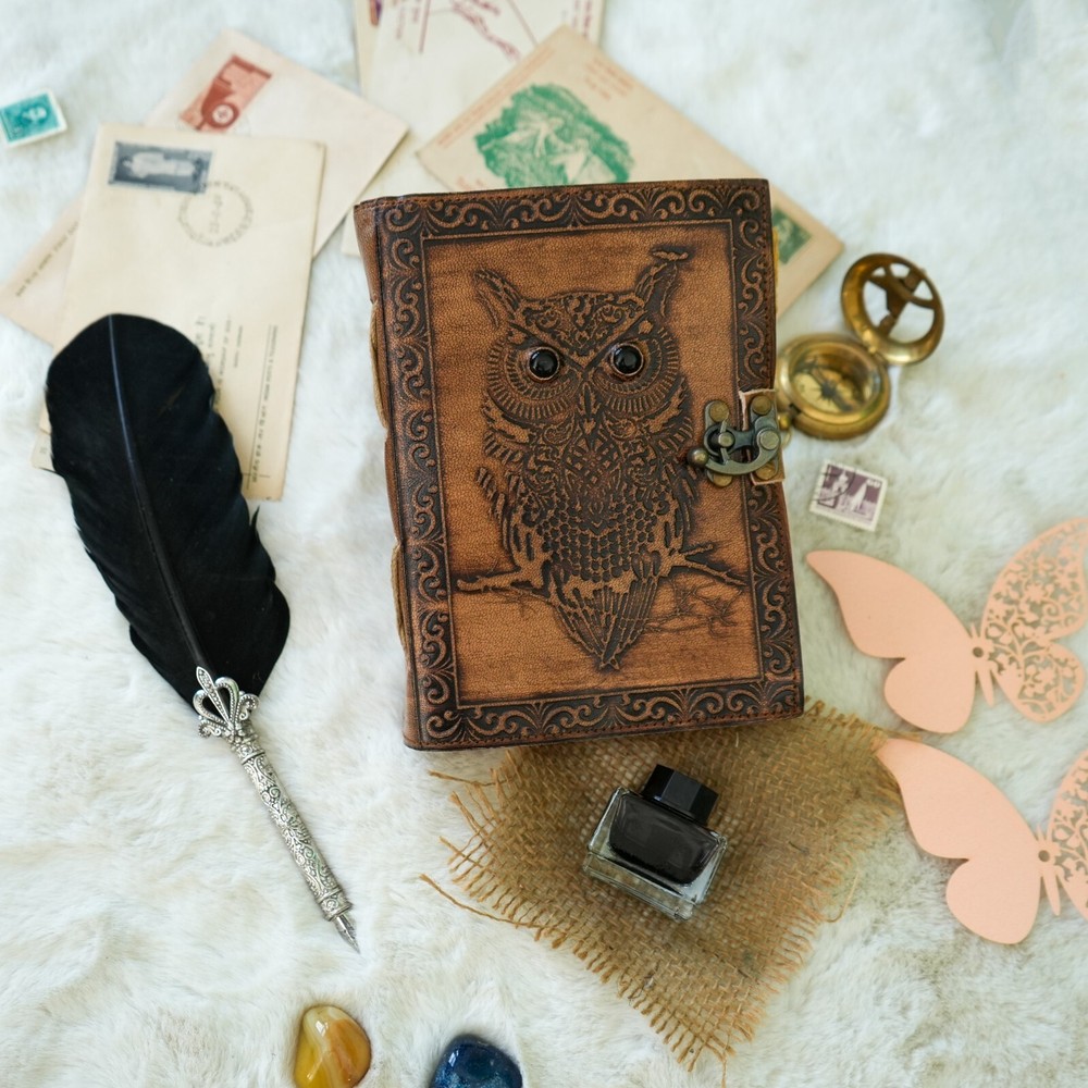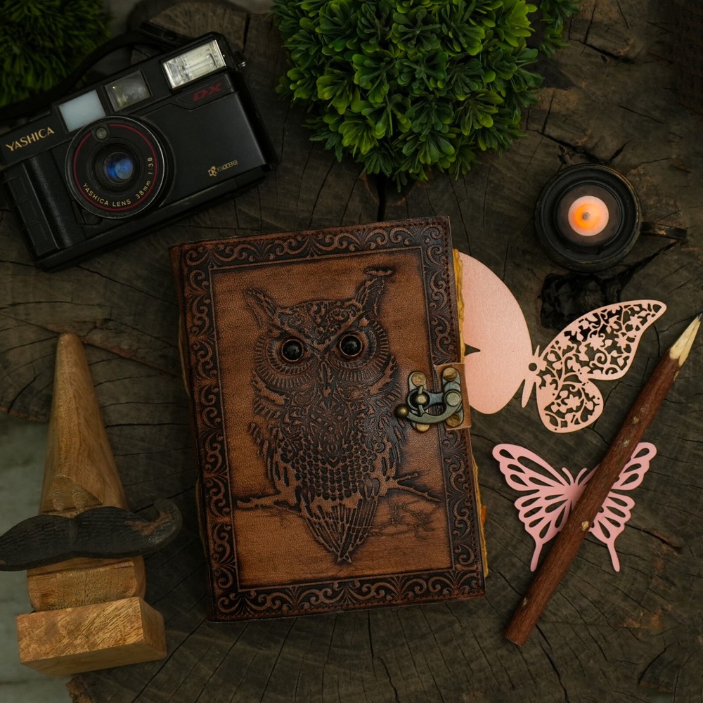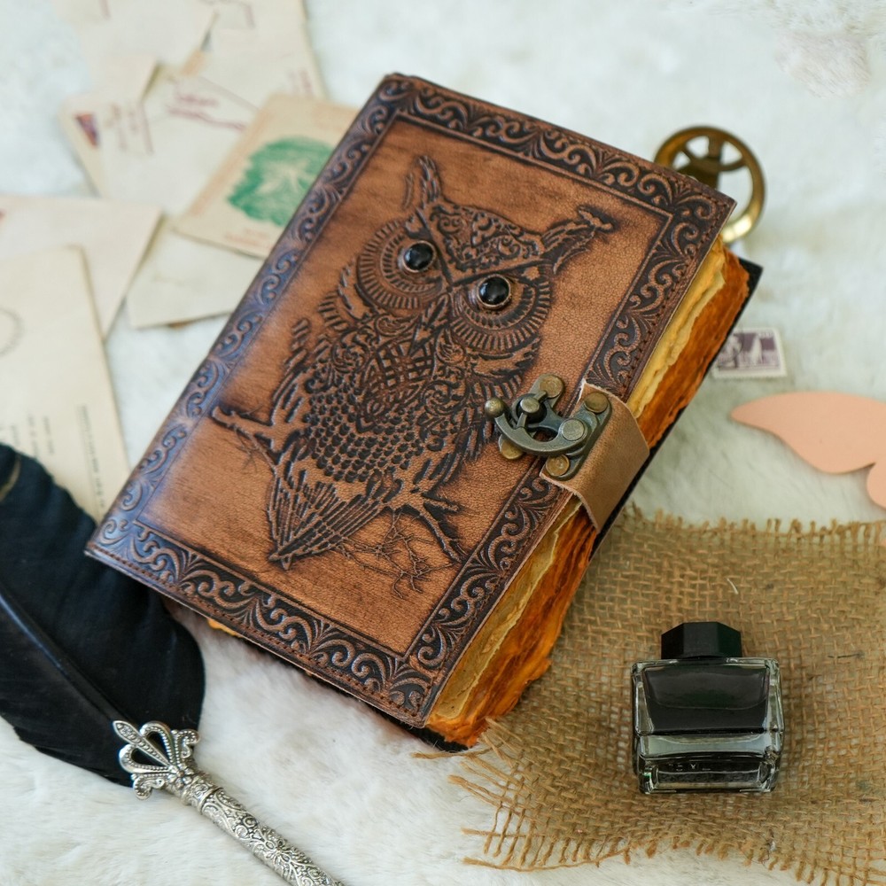 π¦β¨ Vintage Owl Handmade Leather Journal β Antique-Style Diary & Notebook Channel the wisdom and mystery of the owl with this beautifully handcrafted leather journal . Featuring a detailed embossed owl design , this vintage-style diary is the perfect companion for writers, artists, and spiritual seekers who appreciate the magic of nature and knowledge. Whether you're journaling, sketching, or recording dreams, this notebook offers a timeless space for your creativity. πΏ Features & Craftsmanship: β Premium Genuine Leather β Soft, durable, and naturally ages beautifully over time. β Intricate Embossed Owl Design β Symbolizing wisdom, intuition, and knowledge . β Handmade & Unique β Each journal is individually crafted, making it truly one of a kind. β High-Quality Paper Options β Choose from lined, unlined, or handmade cotton paper , perfect for writing, sketching, or journaling. β Compact & Travel-Friendly β Ideal for daily journaling, note-taking, or creative expression. β Secure Closure β Comes with a leather wrap, button, or metal clasp to keep your pages protected. π Perfect For: β Writers, poets, and journal lovers β Owl enthusiasts, nature lovers, and spiritual seekers β Dream journaling, tarot readings, and manifestation tracking β Artists and creatives inspired by mythology and wisdom π A Meaningful & Thoughtful Gift Looking for a unique and symbolic gift ? This Owl Embossed Leather Journal is a perfect present for birthdays, anniversaries, holidays, or special occasions . With its vintage charm and deep symbolism , itβs a cherished keepsake for anyone who values knowledge, insight, and creativity . π¦ Fast Shipping & Personalization We offer quick shipping and custom engraving options ! Personalize your journal with initials, a name, or a special quote for a one-of-a-kind touch. Message us for details! π¦β¨ Unlock your wisdom and creativity β Order your Vintage Owl Leather Journal today!
