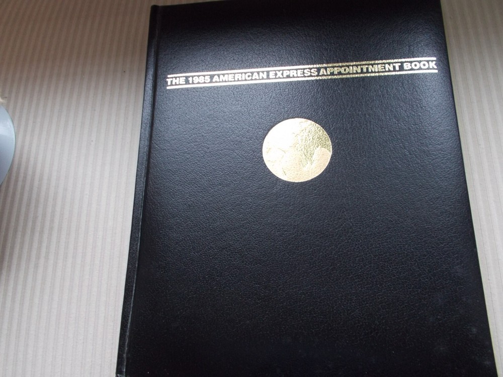 Vintage - The 1985 American Express Appointment Book – Black Leather Cover Daily Appointment Planner. Condition is Very Good. On page 193, a calculation was written on top of page. Shipped USPS Media ...
