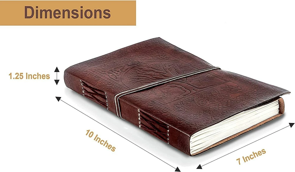 Product Description Vintage Goat Leather Bag Suppliers & Exporters, India Vintage Crafts is based at the north Indian region state Rajasthan, Udaipur, otherwise known as "The city of Lakes and Maharajas". Founded in 1997, Vintage Leather Bag Shop today produces hand carved Leather Journals, Photo Album, Leather Folder, Drawing Album, Telephone Dairy & Pocket Dairy of the highest quality, using the best available teak & wood. The extraordinary ability of our skilled artists can be seen in each one of our fine masterpieces. Product Features Imported GENUINE DURABLE LEATHER :- Soft & Supple Dark Brown Genuine Leather with a real leather scent. Naturally tanned with special oil, a special keepsake for your thoughts, plans & ideas. PERFECT SIZE FOR MANY USES :- 1.5 inch thickness, easy for handwriting, drawing or sketching and compact enough for carrying in your bag. Ideal for alternative Artists, Travelling, Business, Teen Journals, Poetry Work, Journalists, Food Planner, Scrapbook etc. Dimensions 10.2 x 7.3 x 1.6 inches, Unlined 180 handmade paper. Perfect gift Idea for all occasion like Christmas, New Year, Black Friday, Cyber Monday, Thanksgiving day, Mothers Day, Fathers Day, Teachers Day or other special events Authenticity Assured Each and Every product goes through a 3-step quality check process before dispatching. All the details mentioned in this product page will be fulfilled in your product as it is. If you find any issue with the product please let us know immediately. We strictly follow the 100% Buyer's Satisfaction Policy. PAYMENT - Accepted All Method. SHIPPING - Standard / Economy Shipping Available [ Depend on the Buyer Country & Shipping Company Services ] RETURN & CUSTOM DUTY - 30 days Return Accepted & Buyer will Pay Return Shipping Custom & other country charges will pay by Buyer [ We are not responsible for the same ]