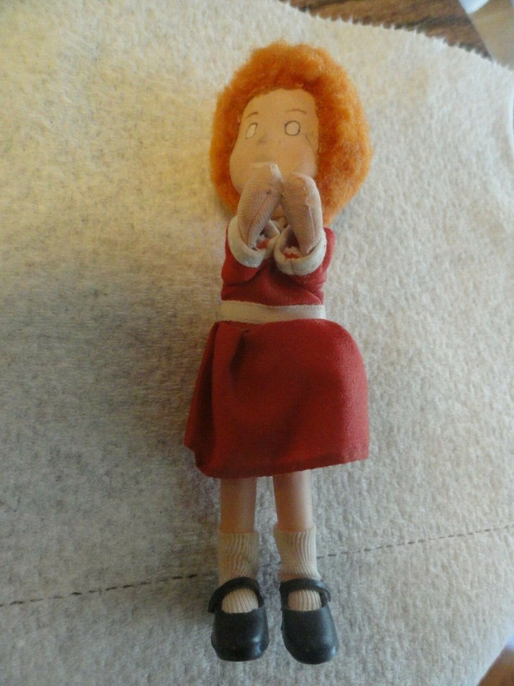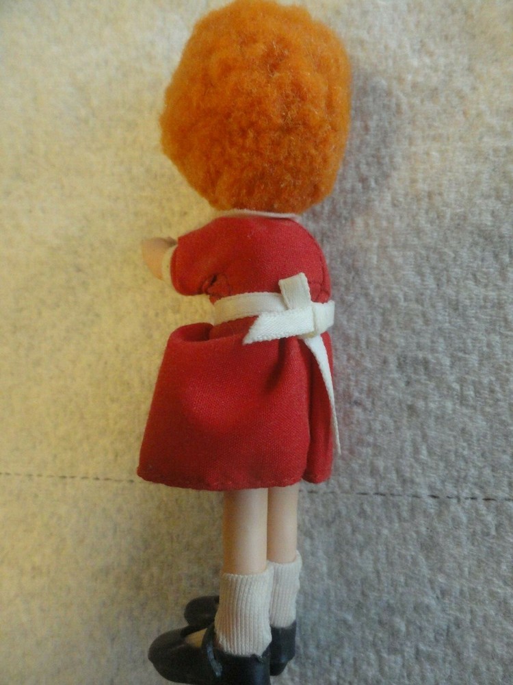 5" long. Arms separate to clip her on something. Nice condition. See photos....
