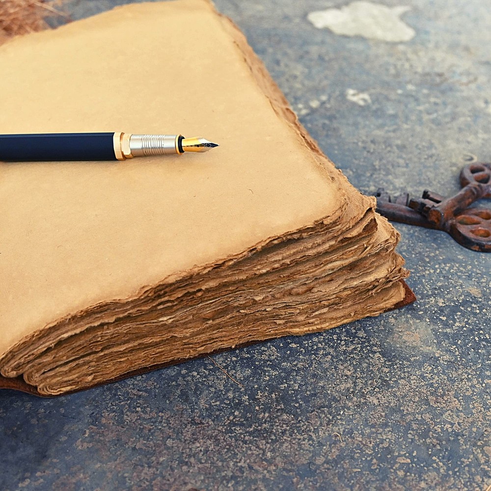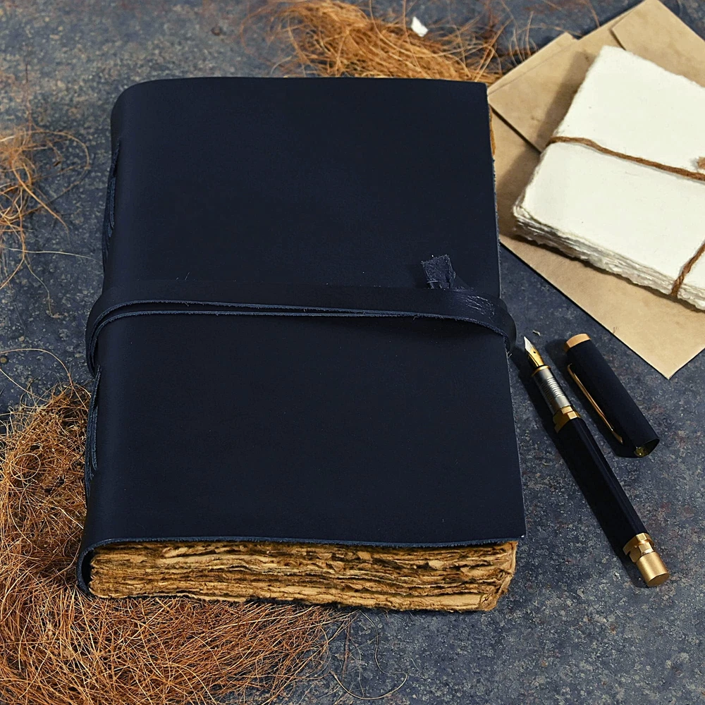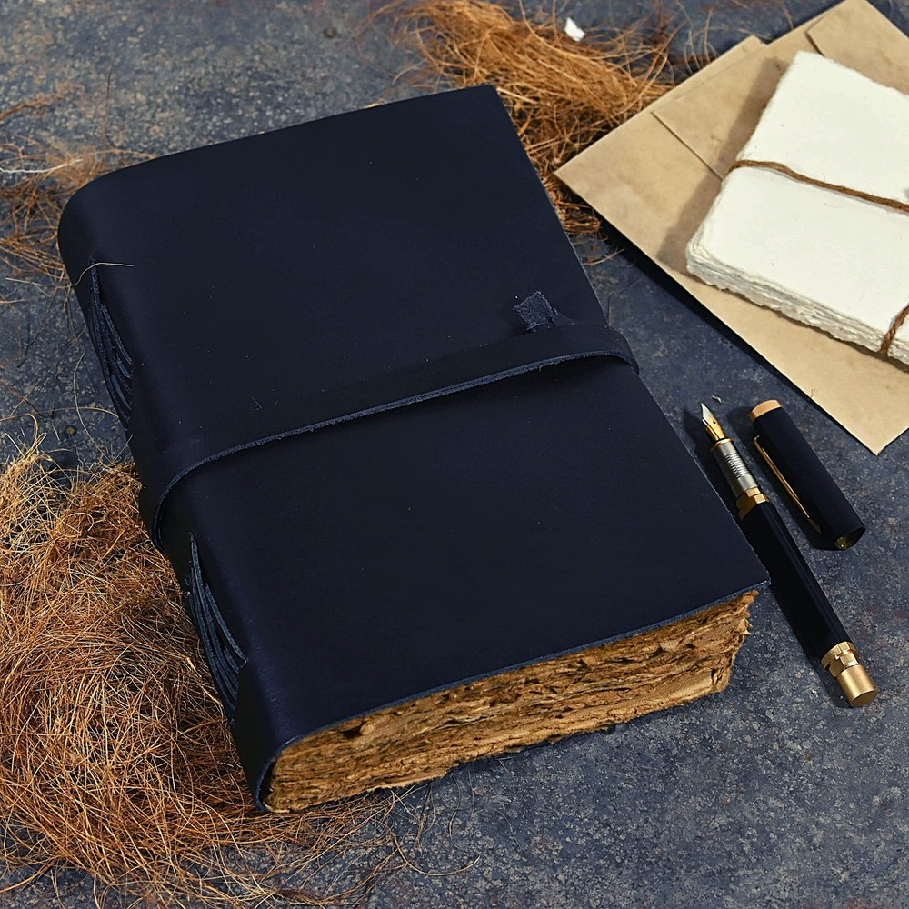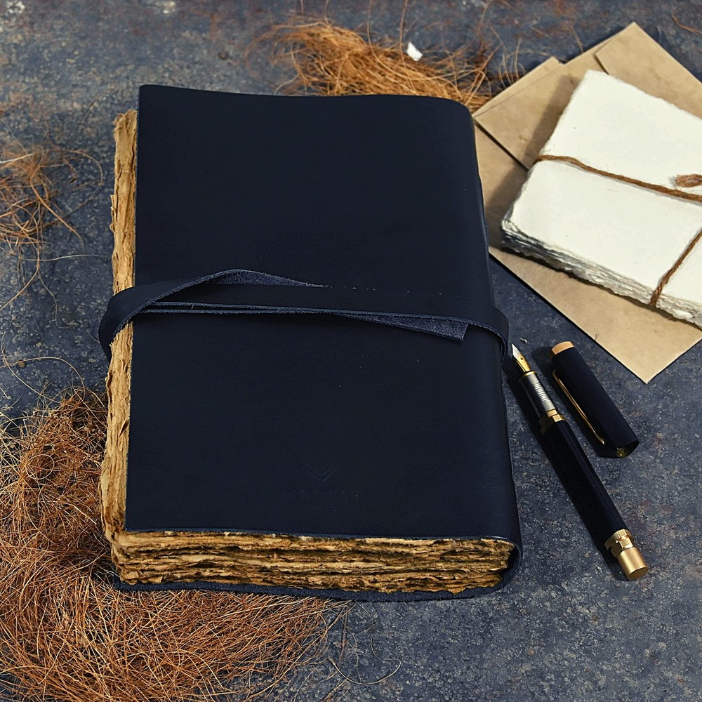 Vintage leather journal - Deckle Edge Rustic Paper - Best leatherbound Pages Book of Shadows, Grimoire, Junk Journal, Fantasy medieval gifts, antique calligraphy notebook (Raven Black, 9"x6") ✓ Free 60 Day Returns ✓ Free Express Shipping Description: Modest Goods was started in the San Francisco Bay Area with a simple mission. “Providing unique and high-quality goods at the best prices”. Let our quality speak for itself. We encourage you to start creating unique memories of your trips, vacations or your everyday events by choosing a Modest Goods product that will allow you to unleash your inner creativity and channel your inspiration.THE MODEST GOODS HAND-CRAFTED LEATHER JOURNAL IS BUILT TO LAST This rustic design leather notebook from Modest Goods is the perfect writing buddy for journal lovers and anyone with a taste for things with an antique or vintage feel.Our journal features a classic leather-bound cover and wonderfully creamy, textured sheets without lines. Prevents any ink bleeding through to make writing a joy.To make thing even better, we decided to use pages made from recycled acid-free cotton paper, allowing for an eco friendly and environmentally conscious design. WARNING: Be ready to receive tons of complements! PERFECT FOR ALL YOUR DAILY WRITING AND DRAWING NEEDS Nature journaling Instagram photobook or scrapbook Teen journal or girls' diary Travel diary Weight Watchers Records New baby records or journal Letters to your loved ones Letters to give to your children when they grow up Daily Notepad Scheduling and appointment reminders Life moments tracker Vacation scrapbook Story writing Notebook to write in And many more uses… A SPRINKLE OF GOOD KARMAOur small team here at Modest Goods believes in making products that make the world a better place. All our products are ethically sourced and fairly traded. For every purchase we allocate a percentage of our profits towards donating fresh meals and free educational Features: RUSTIC HANDCRAFTED: Our unique unruled leather journal is made with 100% pure buffalo leather that will stand the test of time. The leather is meant to age, developing an even better feel and color. A proprietary oil tanning process is used to give the cover its vintage feel. Since we believe in using only natural leather, our products are truly unique and are destined for compliments. TRULY VERSATILE: The Modest Goods journal is the perfect size for all your drawing, writing, sketching, note taking, traveling and much more. Our customers have been known to use it for Nature journaling, Instagram photo book or scrapbook, Teen journal, Life moments tracker, Vacation scrapbook, Story writing, Hunting Logbook, Poetry Work, Bible Journaling. ECO-FRIENDLY BY NATURE: When we were designing this journal, we were seriously concerned about its environmental effects. So, we decided to use only 240 pages/120 sheets of handmade non-refillable deckle edge paper that is thick enough to withstand any type of pen. Our paper is acid free and no trees were harmed in its making. OLD SCHOOL VINTAGE FEEL: Let this journal take you back in time to when things were just so simple. Let your art flow under the shadow of our rustic cover or inscribe poetry on our smooth creamy pages. The leather strap will keep your diary tightly closed when not in use or could be used as a fancy bookmark. The notebook makes a perfect gift or present for anniversary, graduation, Birthday and will surely excite anyone. MONEY BACK GUARANTEE: Try our handmade rustic leather journal for 365 days risk free. We are a US based small-business unlike other China based sellers and are always here to help. Feel free to reach out to us anytime! For every journal we sell, we allocate a percentage of our profit towards donating fresh meals and educational materials to families and children in need. PICK ONE UP TODAY! Product Details: Brand: Modest Goods Color: Raven Black Theme: Book Cover Material: Leather Style: Medieval,Unique,Vintage Ruling Type: Plain Special Feature: Unruled Number of Items: 1 Specific Uses For Product: Nature journaling, Instagram photo book or scrapbook, Teen journal, Life moments tracker, Vacation scrapbook, Story writing, Hunting logbook, Poetry work, Bible journaling See more Number of Sections: 1 Brand: Modest Goods Item Weight: 1.5 pounds Package Dimensions: 10.04 x 7.09 x 2.2 inches Color: Raven Black Cover Material: Leather Material Type: Paper, Leather Number of Items: 1 Size: 9"x6" Ruling: Plain Manufacturer Part Number: MGNF Date First Available: May 11, 2021
