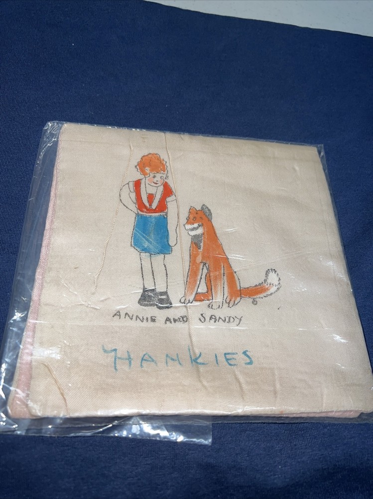 Vtg Little Orphan Annie & Sandy comic book Character 1930s hanky handkerchief. Sold as is Please see photos carefully prior to purchase Has a few stains may be able to be removed with careful cleaning...