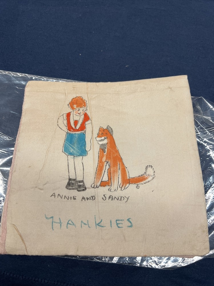 Vtg Little Orphan Annie & Sandy comic book Character 1930s hanky handkerchief. Sold as is Please see photos carefully prior to purchase Has a few stains may be able to be removed with careful cleaning