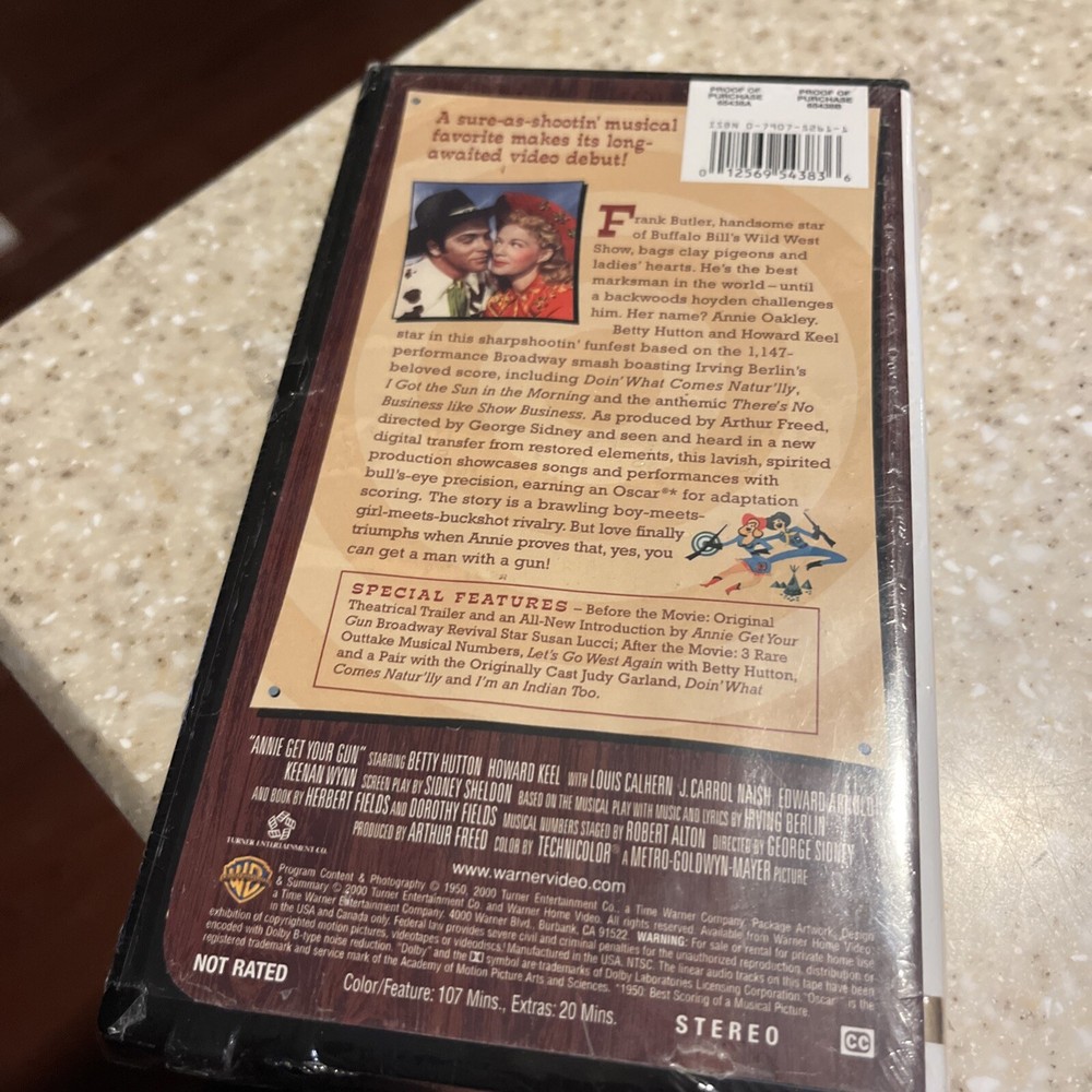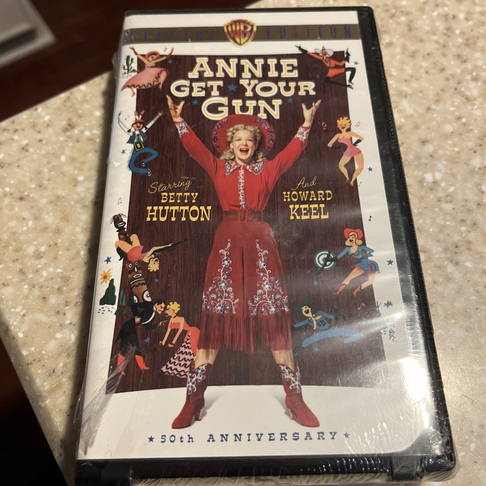 The product is a brand new VHS tape of the movie "Annie Get Your Gun" featuring actors Howard Keel and Betty Hutton. This film is not rated and was not a former rental. Produced by Warner Home Video in the United States, this VHS tape offers a chance for fans of classic Hollywood movies to enjoy this timeless musical in a new and pristine condition.