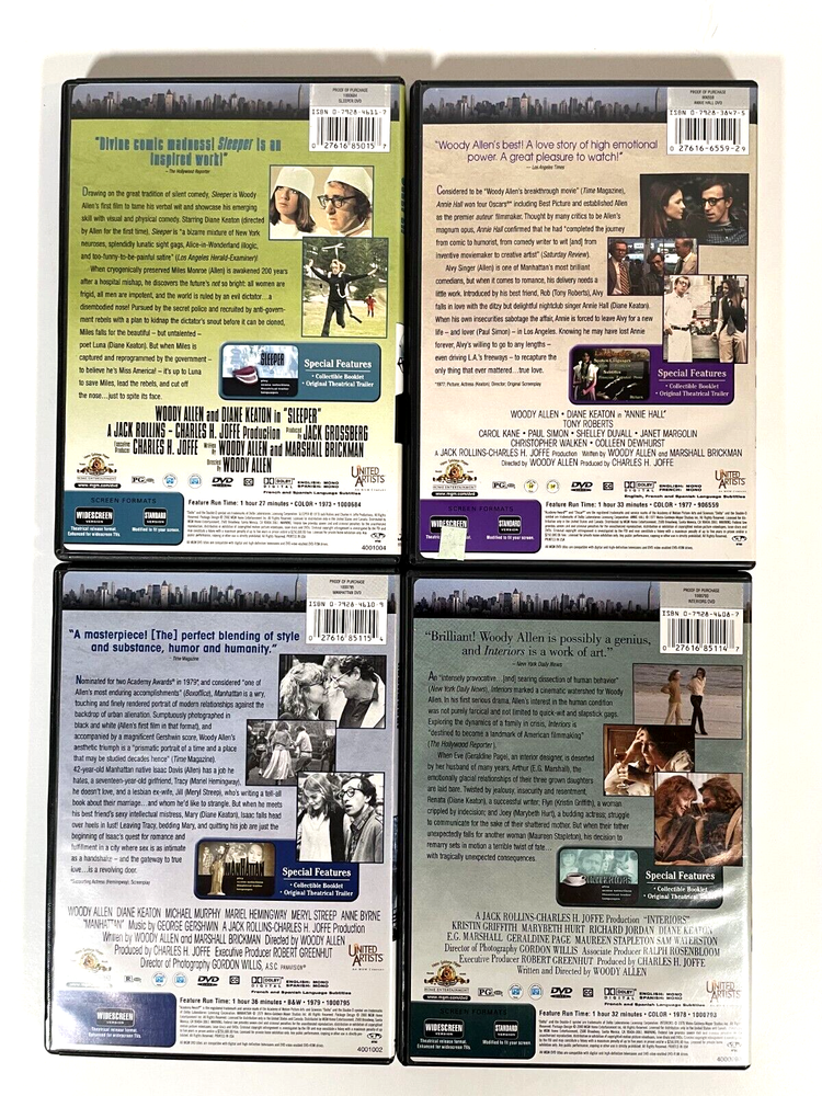 WOODY ALLEN DVD Lot of 4, including: Sleeper Annie Hall Manhattan Interiors...